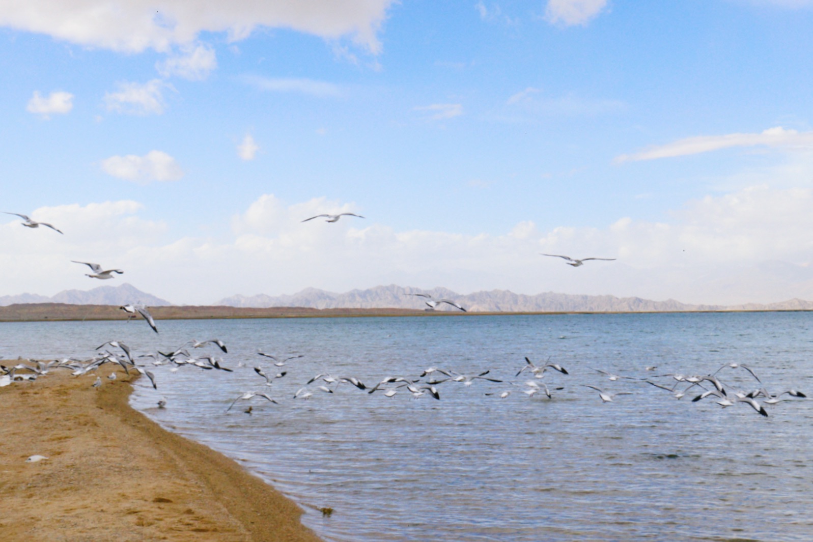 路上偶遇小柴旦湖。其实导航上标的是“小柴达木湖”,我不知道它跟柴达木是什么关系,还是习惯叫它小柴旦湖吧。