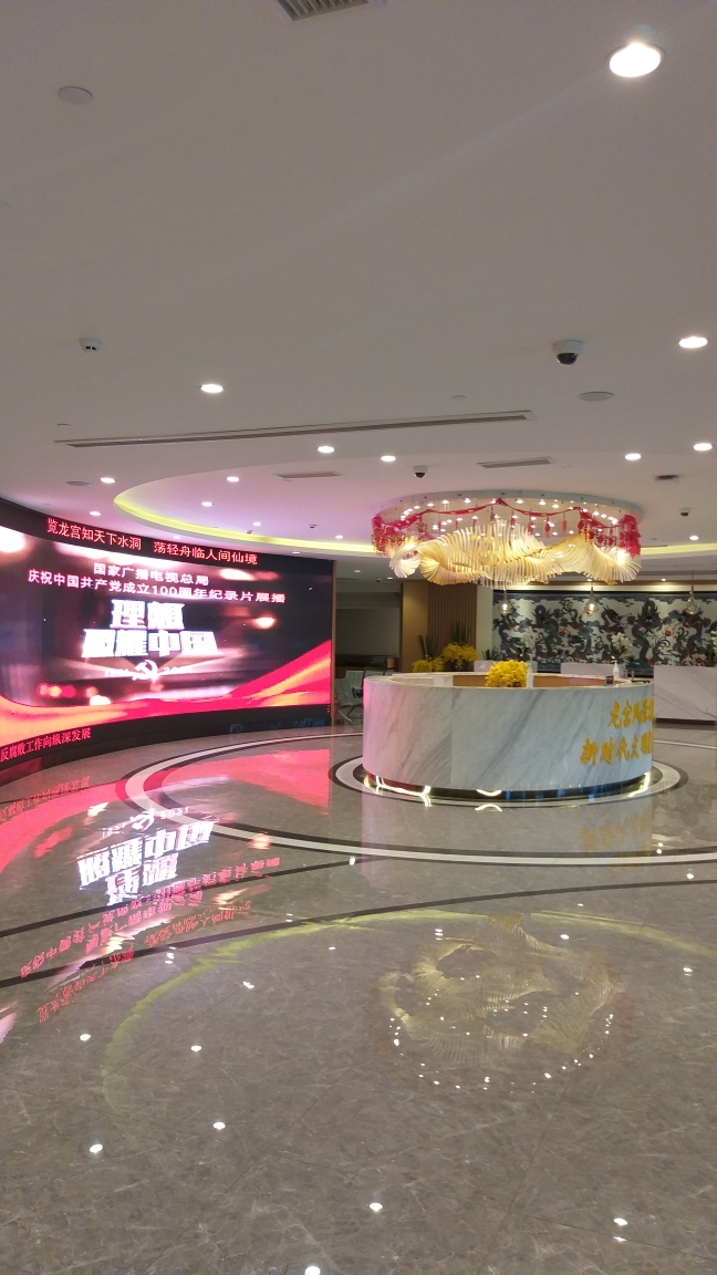 气派的龙宫一楼大厅,进去的时候需要查看粤康码的绿码以及量体温。