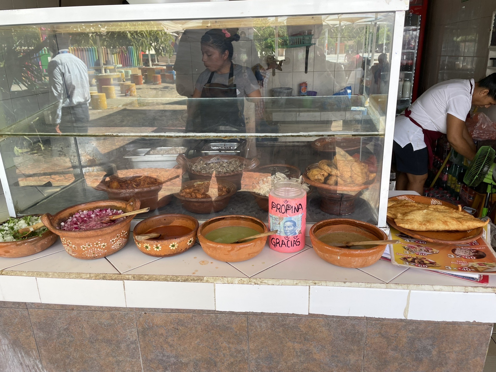 放下行李后,我们就开始在街上找寻旅行社参团,参团记住一定要砍价,在比较了好几家的价格后后,最后我们定了三天的单日游行程,奇琴伊察、天坑一日游、谢哈浮潜公园一日游、西普洛公园一日游,2个人一共495美金。随后在附近的换汇处换了一些比索,其实不换比索也可以,但是需要带足很多一块美金用来给小费,坎昆这边的商家很乐意收美金的,我们就是没带太多,所以还是每天都在换钱。