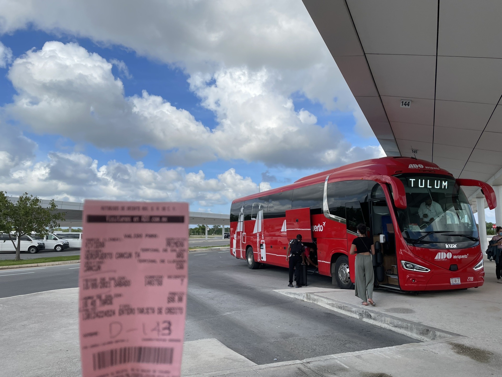 图上的红票就是ADO的巴士票,工作人员会手写乘车口,我们前往了D143等待班车,从机场到市区车程大约30多分钟。抵达市区后天已经快黑了,我们从汽车总站步行到酒店,坎昆市区的酒店普遍很一般,本次旅程我们是七日六晚,考虑到前几天都是早出晚归,住全包酒店不太划算,前四晚我们都定在市区,后面再转移到酒店区住全包,市中心的整体环境确实不太好,Booking上写的三星级酒店但是只能算Motel级别,价格大概在每晚300RMB左右。
