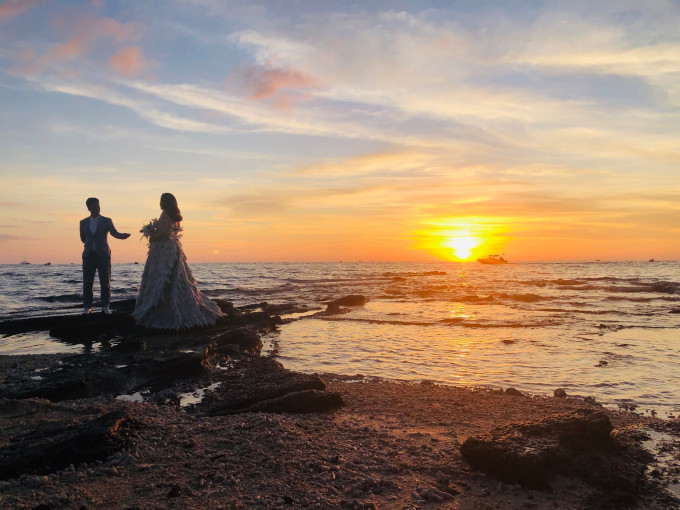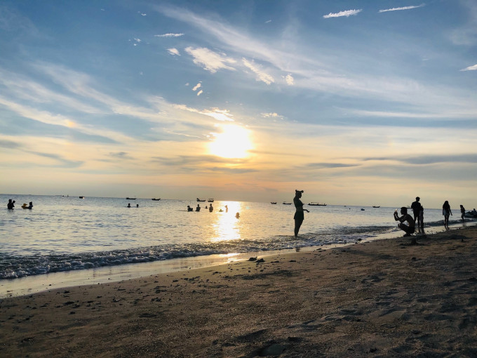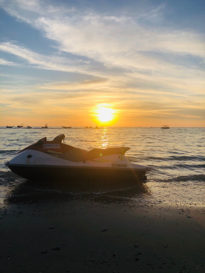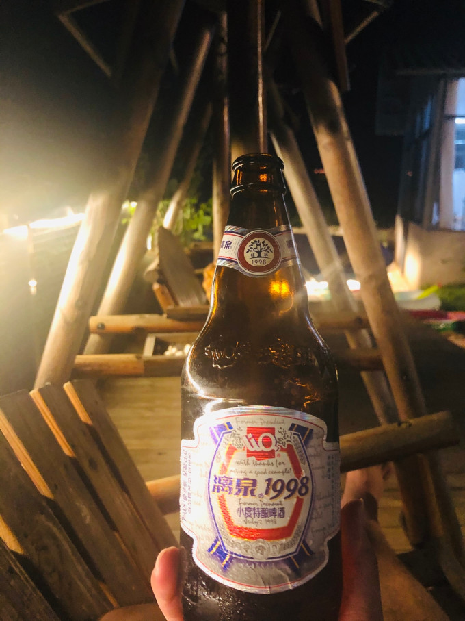 碰到老板后他就开车接我回家里(指的就是民宿,以下都叫家)了,回房间放下行李几乎没休息就直接杀向了南湾海鲜市场了,因为老板刚好要带家里另外2位客人(一对重庆来的情侣)去,我就跟着一起去了,顺便跟他们协商了下搭伙吃饭的问题,毕竟我自己吃还是不好买。 最后我们买了皮皮虾(每个和我的手差不多长,特别大一个,肉质非常好,很多里面有黄)、螃蟹、小青龙(皮皮虾35元/斤、小青龙65元/个、螃蟹不记得了...最后反正算下来海鲜人均100元),这里要提一句,民宿老板是可以帮忙加工海鲜的,大概15-20元一个菜,岛上的店家也可以加工,但是我没去吃过。回家后和他们一起骑电动车去石螺口看日落,海滩人还是比较多的,可能因为这是唯一一个允许游泳的海滩吧。海滩上各种人都有,游客、新婚恋人拍结婚照的、网红拍视频等等,日落美不美自己看图吧。看完日落后回家干饭,饭后拿上一瓶当地的啤酒(漓泉1998,水啤,很淡,没有那种一般啤酒的苦涩味)坐在餐厅外的摇椅上一边吹着晚风一边喝着冰啤酒,听着各种自然的声音,真的太放松了! 晚上应该睡的挺早的,因为第二天要去看日出。