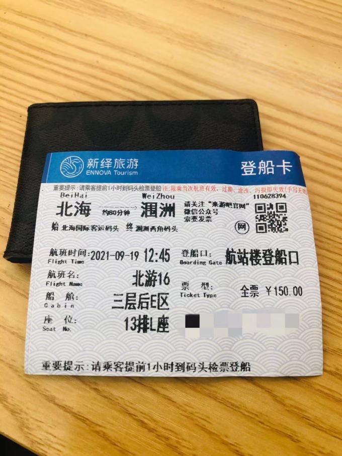 一大早起来滴滴到南昌昌北机场,2个小时左右到达北海福成机场,下了飞机就直接滴滴到北海国际客运港,时间大概在40分钟左右。在附近喝了碗糖水吃了点东西就差不多去检票上船了,坐船时间在80分钟左右,下船后要走大概15分钟才能出去,但是路上的风景很美。
