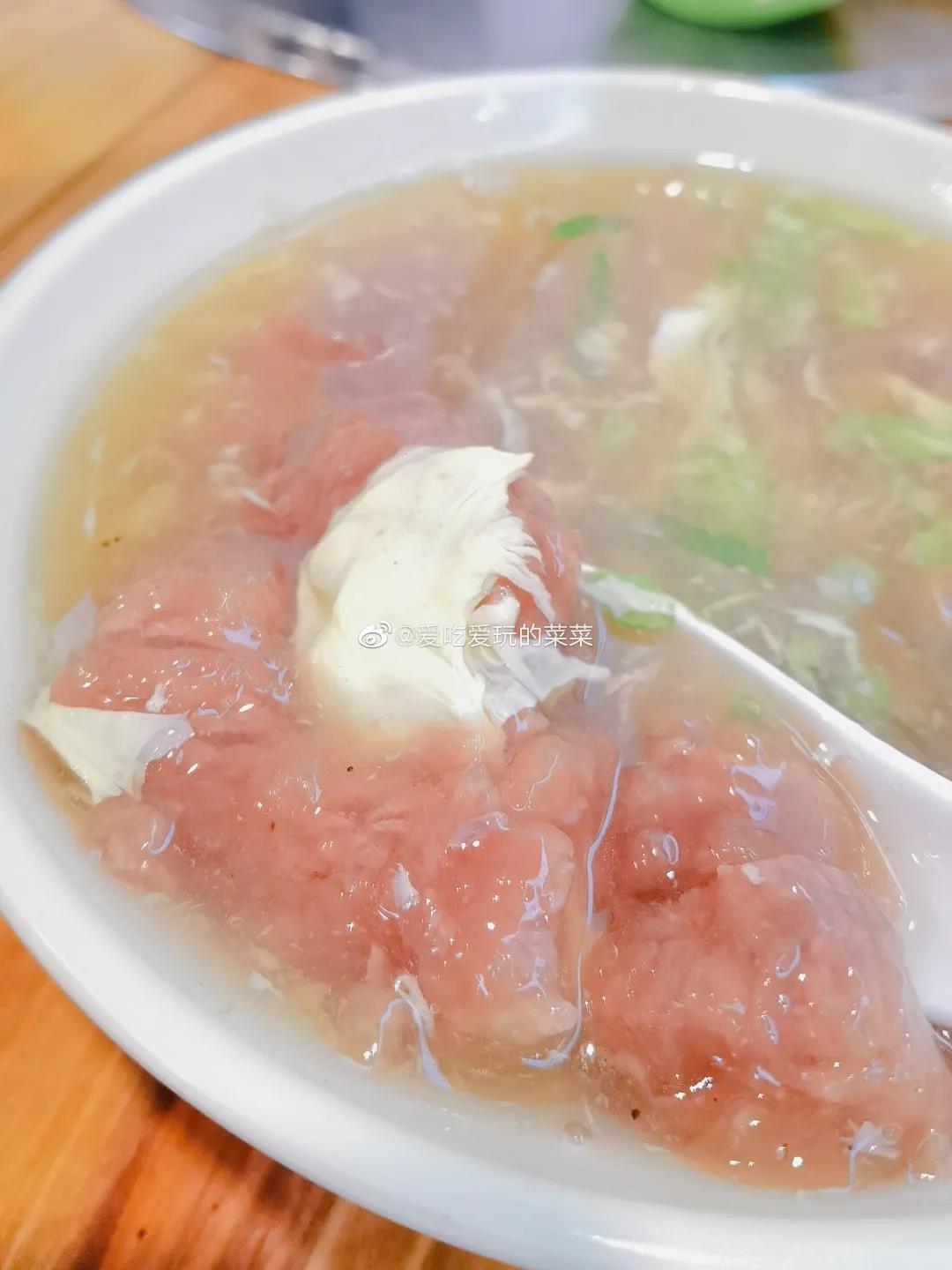 如此一番“按摩”,牛肉被裹上了一层晶莹剔透的“衣服”,变得Q弹十足,胡椒粉的香味把原本浓稠的汤烘托得更热烈,大口咀嚼滑嫩鲜美的牛肉,再配上一勺微辣辛香的汤底,一整天,心里都热腾腾的。