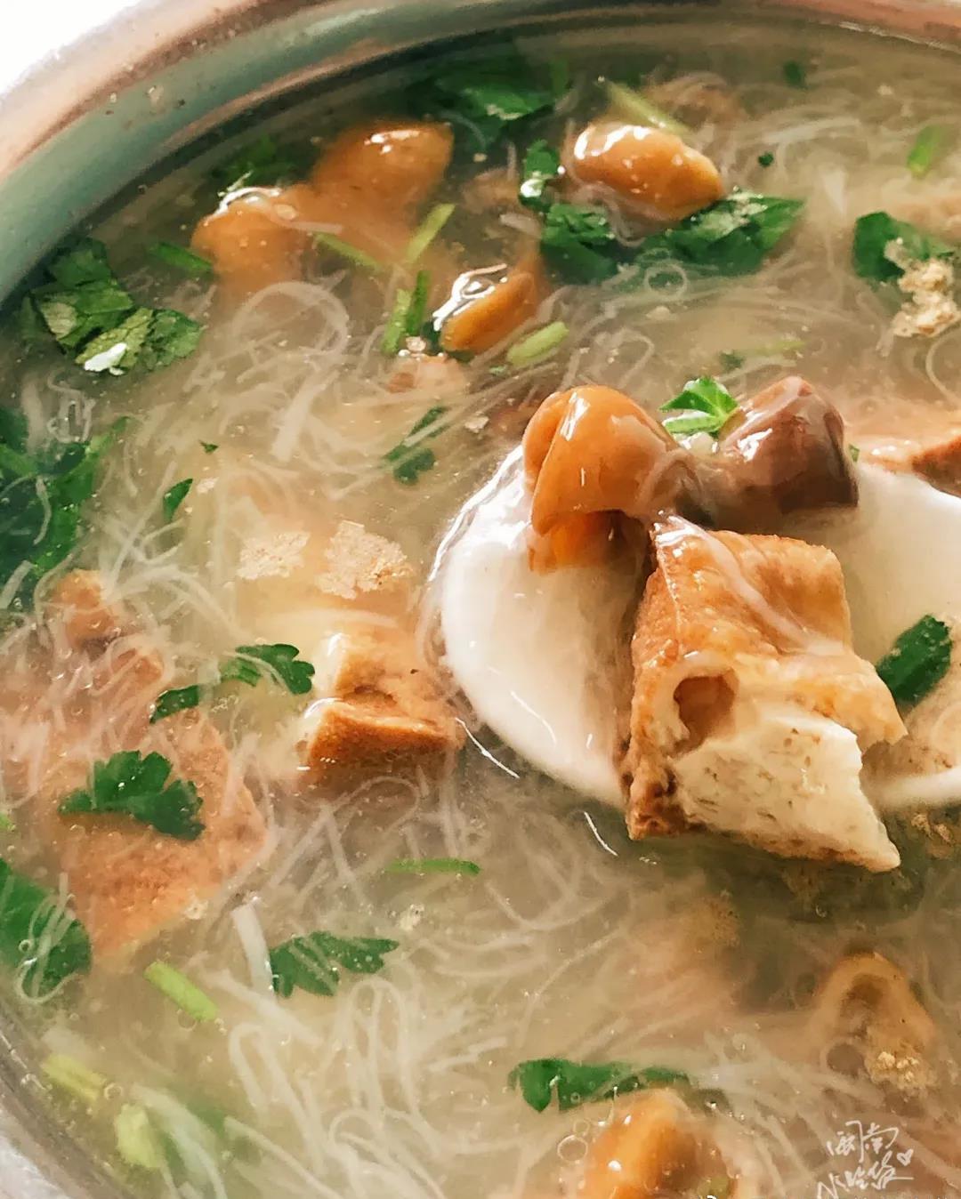 汤头用猪头骨和猪龙骨熬成的清汤,煮好盛入碗中再撒上葱花,满口鲜美爽滑。