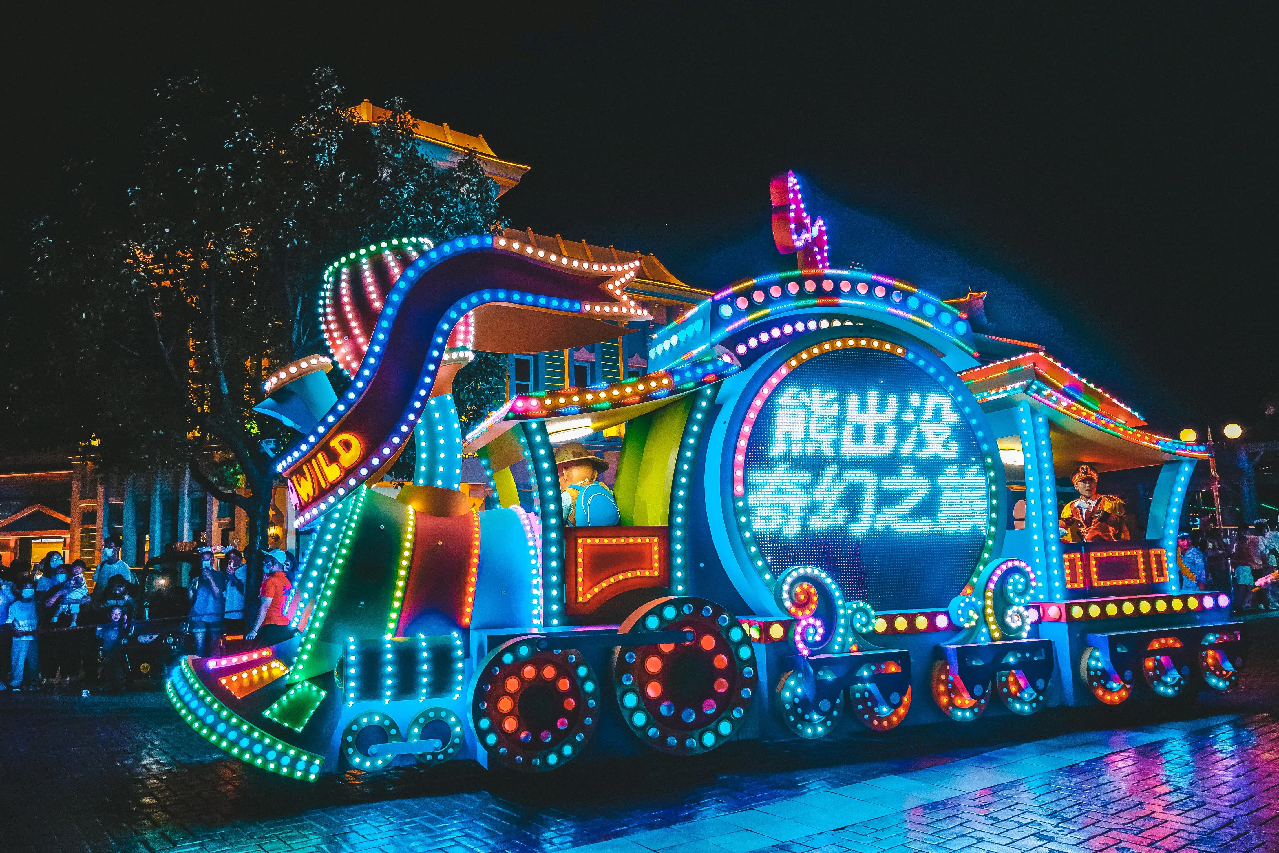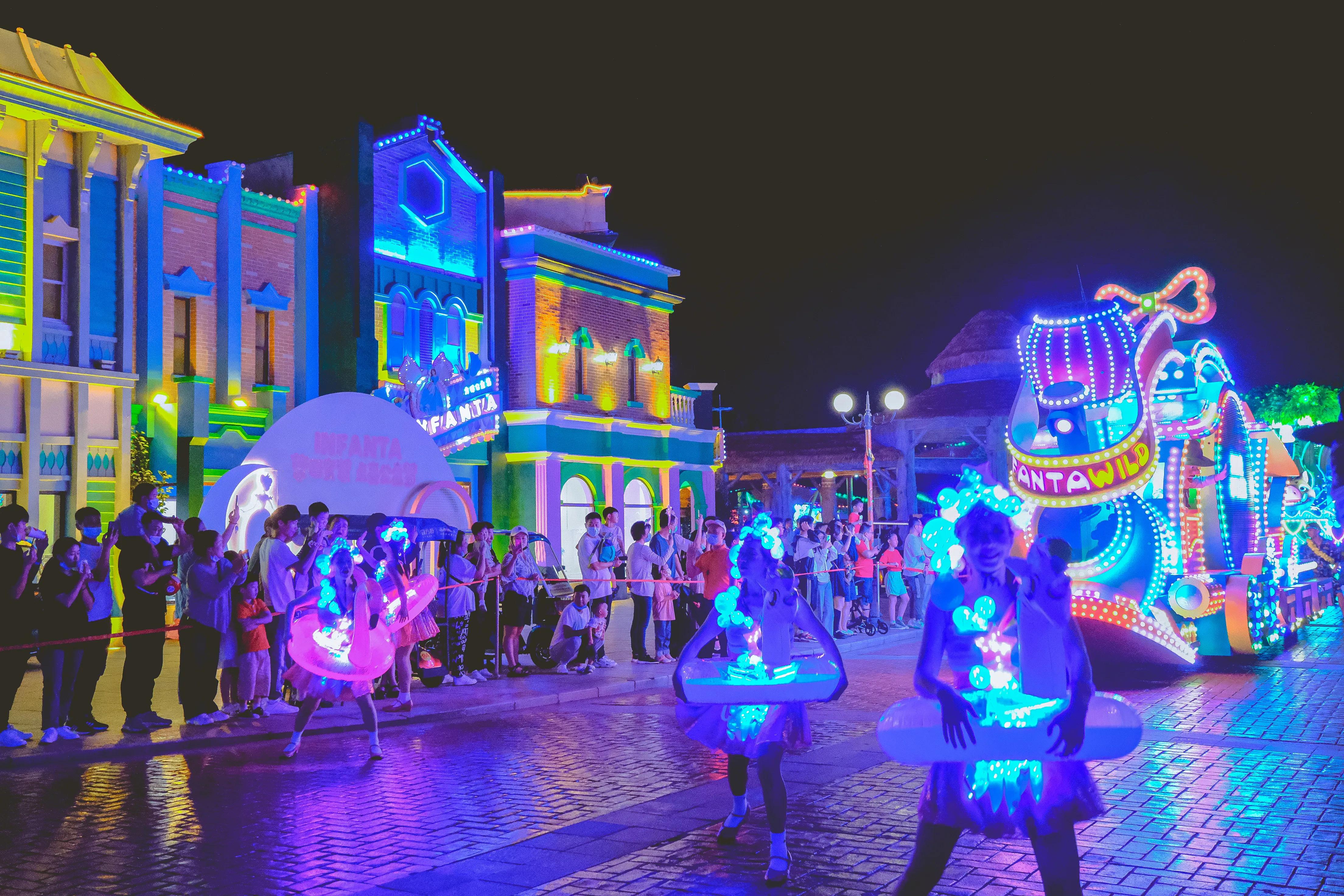 而到了晚上,令人期待的熊出没主题花车巡演就开始啦,你可以与演员们亲切互动,与靓丽炫彩的花车进行合影。