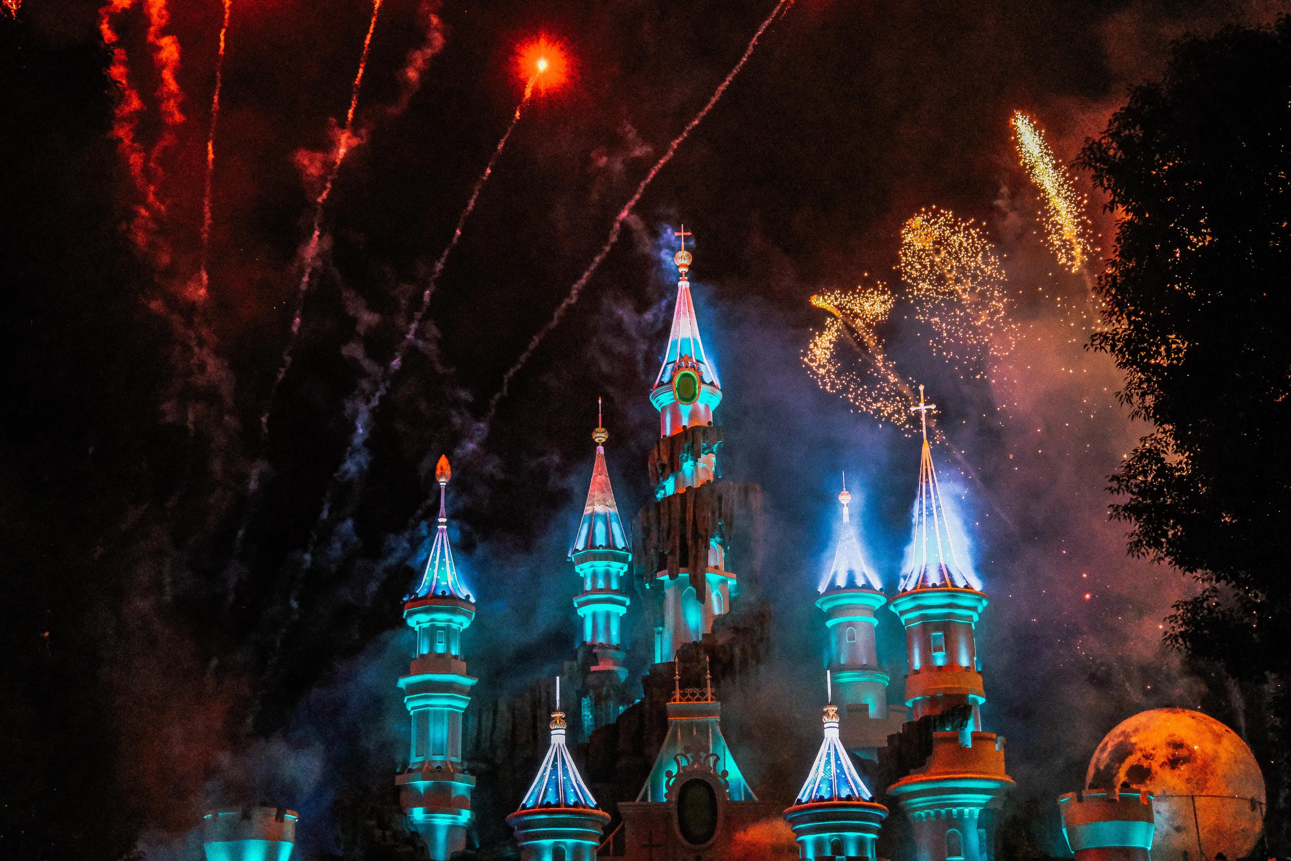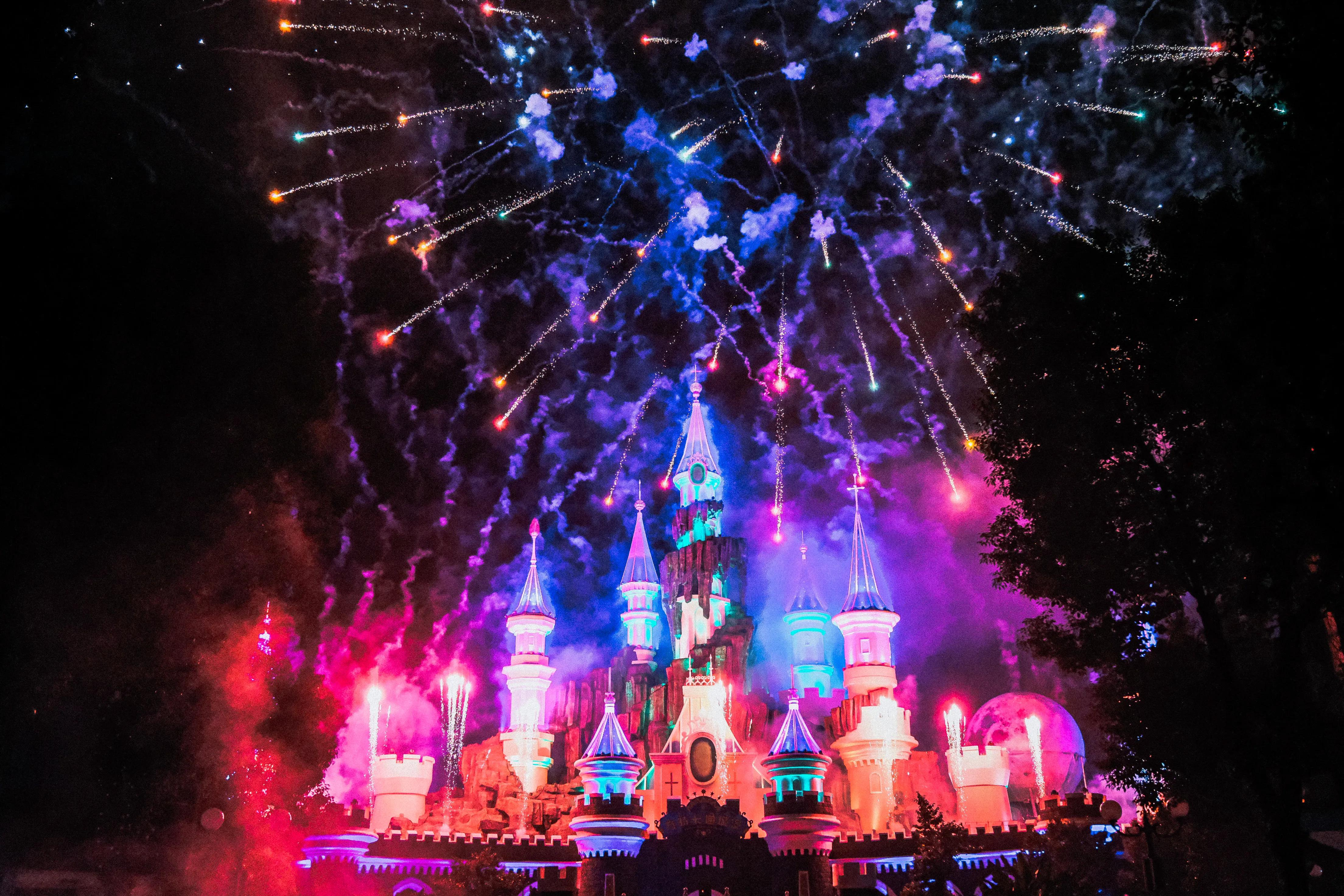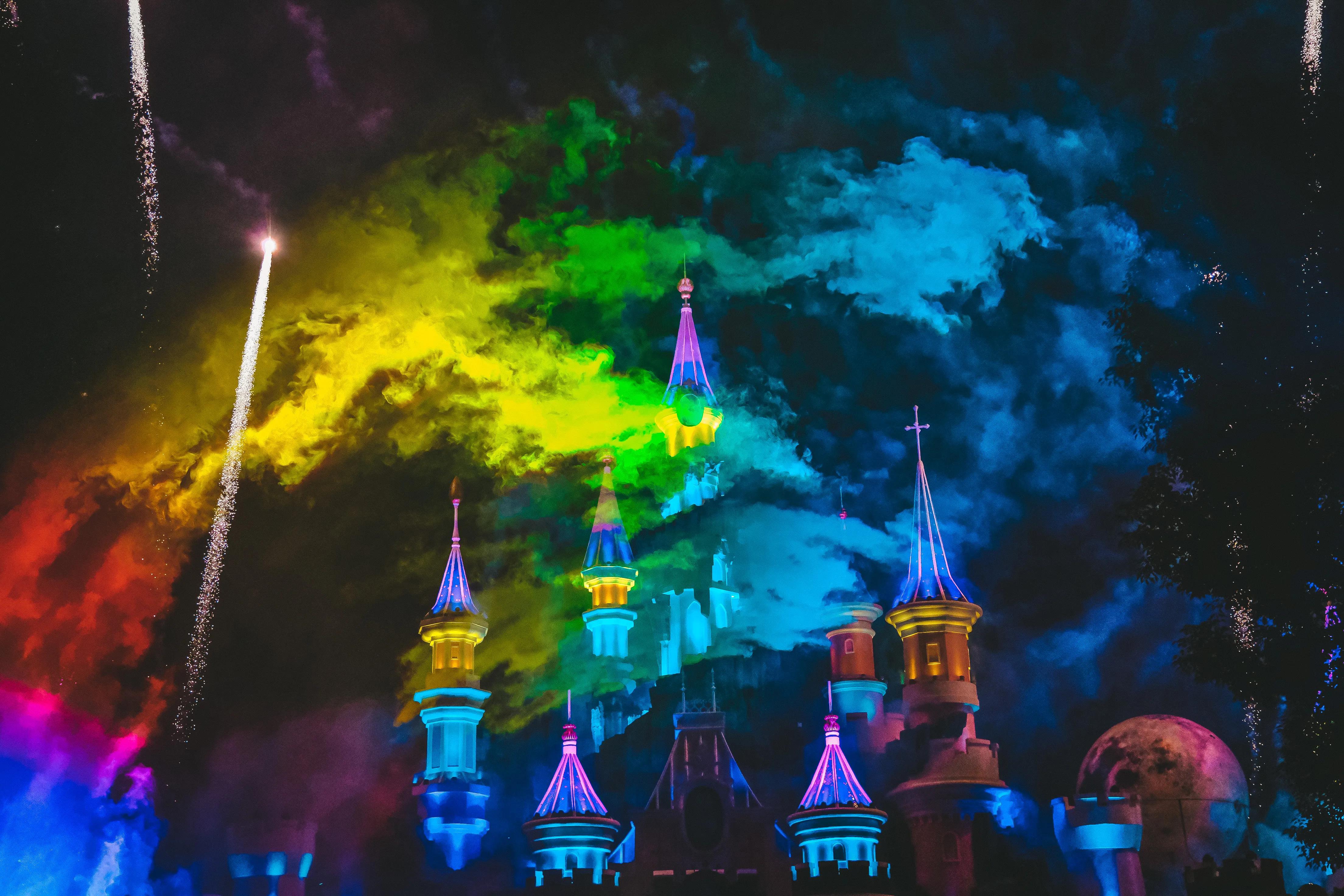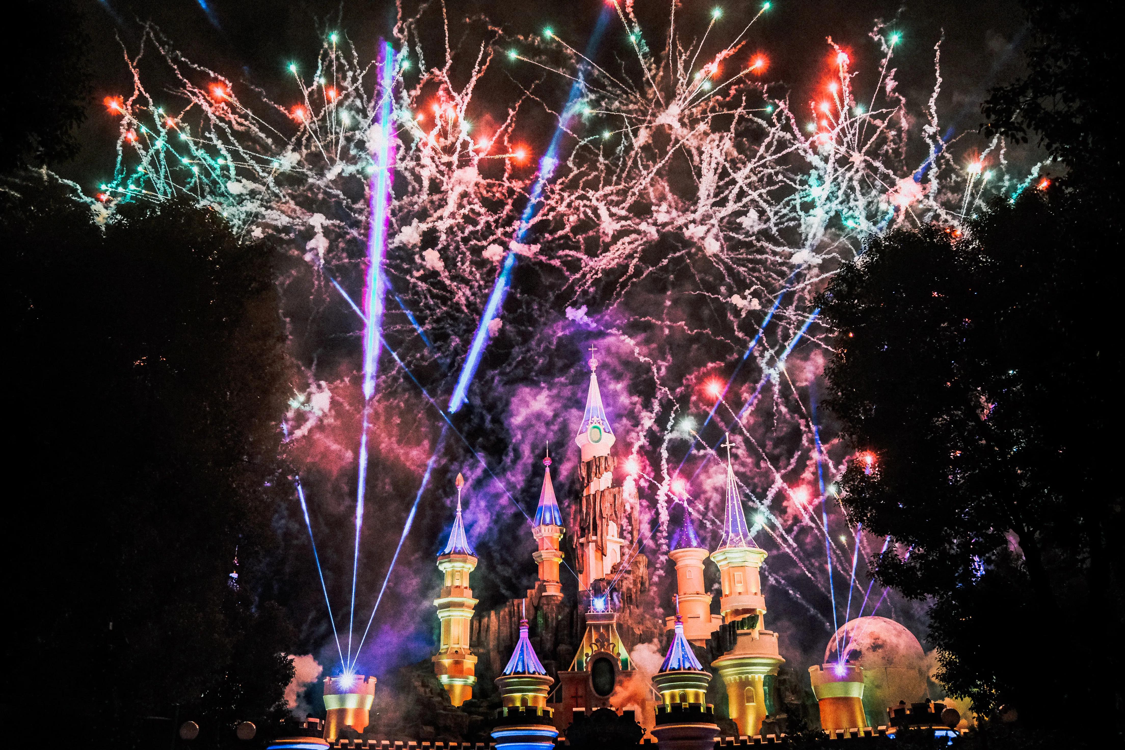 到了九点钟,极光烟花秀点燃城堡的上空,炫目的极光,灿烂的烟花,照映着每一张幸福的脸庞,是方特给每一位游客的专属浪漫!