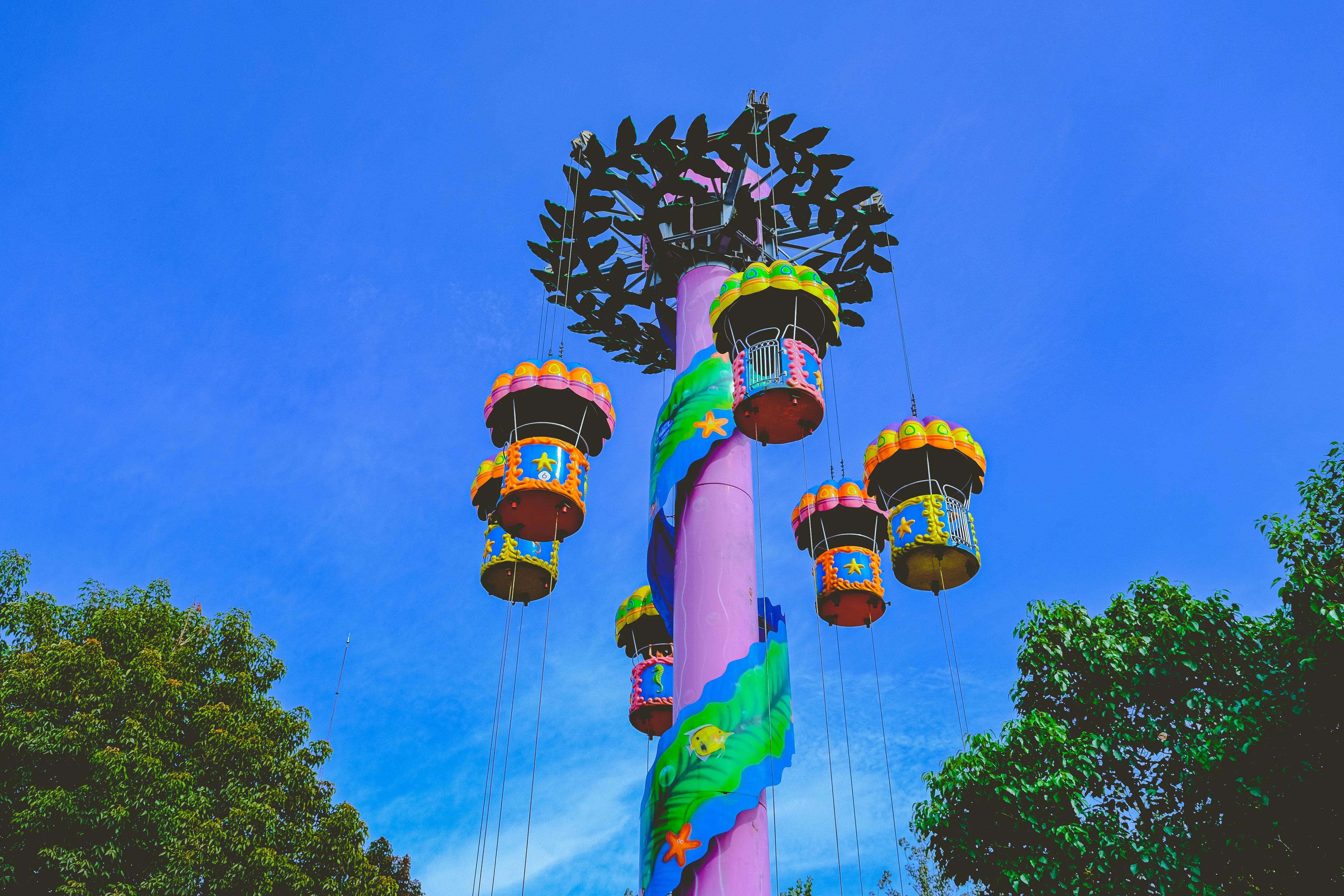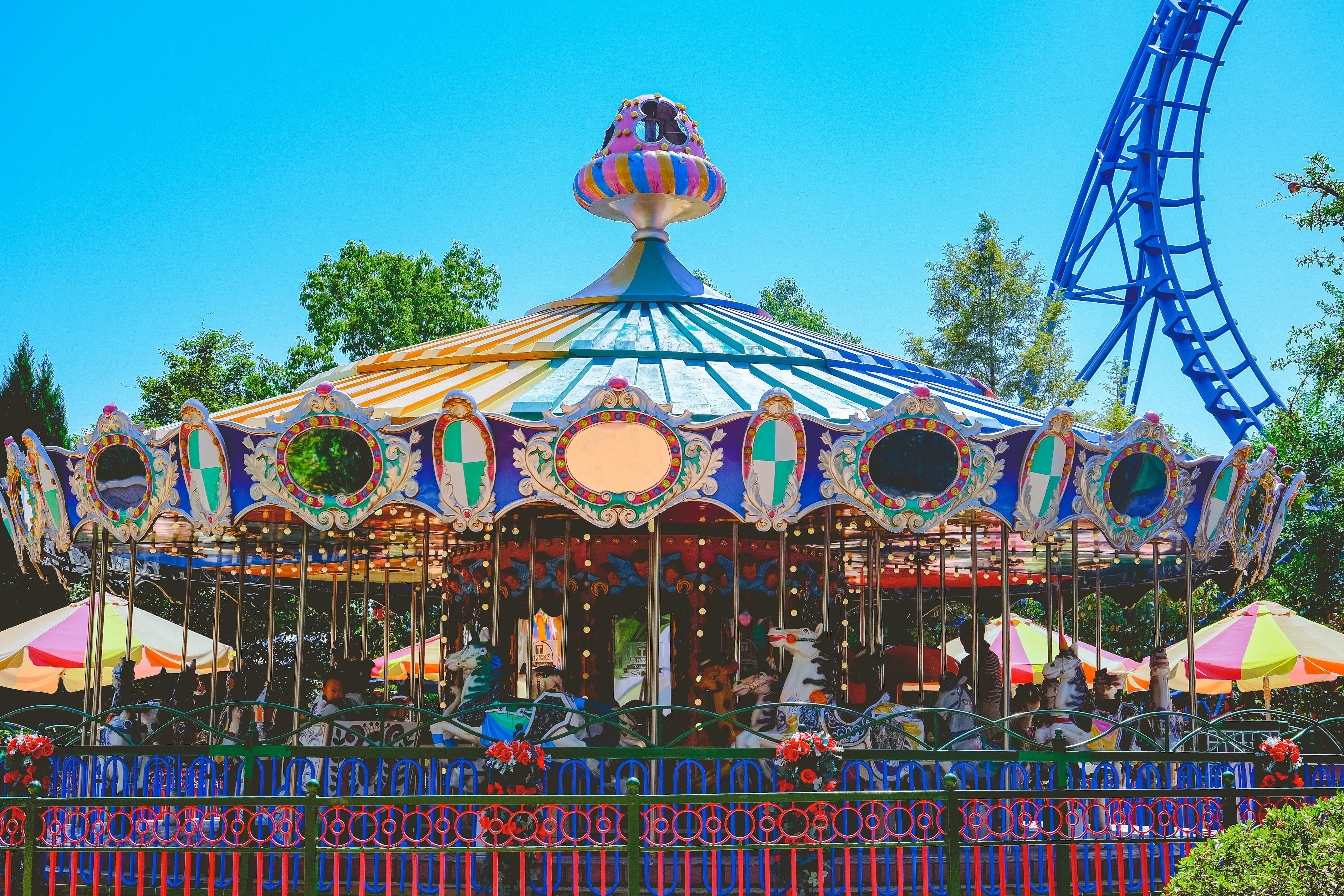 如果跳楼机和高空飞翔你都不敢挑战,没关系,还有双层的旋转木马和跳伞塔,一定也会让你乐此不疲。
