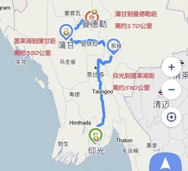 茵莱湖到仰光,距离580公里,车程10小时,飞机1小时。