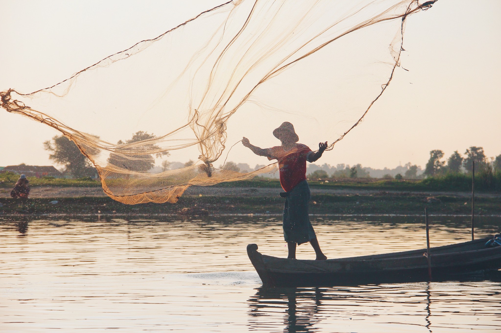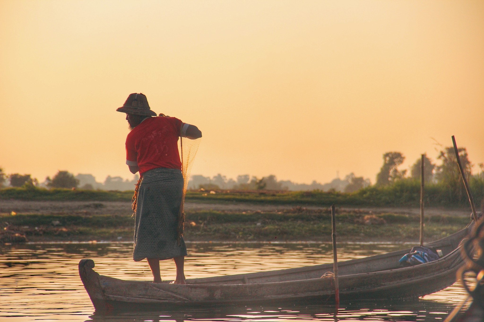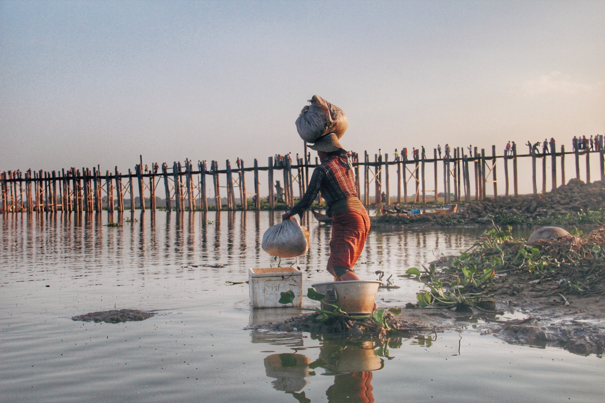 在乌本桥记录下两个印象深刻的画面,渔夫能把几十斤重的渔网撒的如此悠然自若,如此造型优美。女子习惯把物品稳稳地顶在头上,从不会掉落,很好的诠释了“妇女能顶半边天”这句话。
