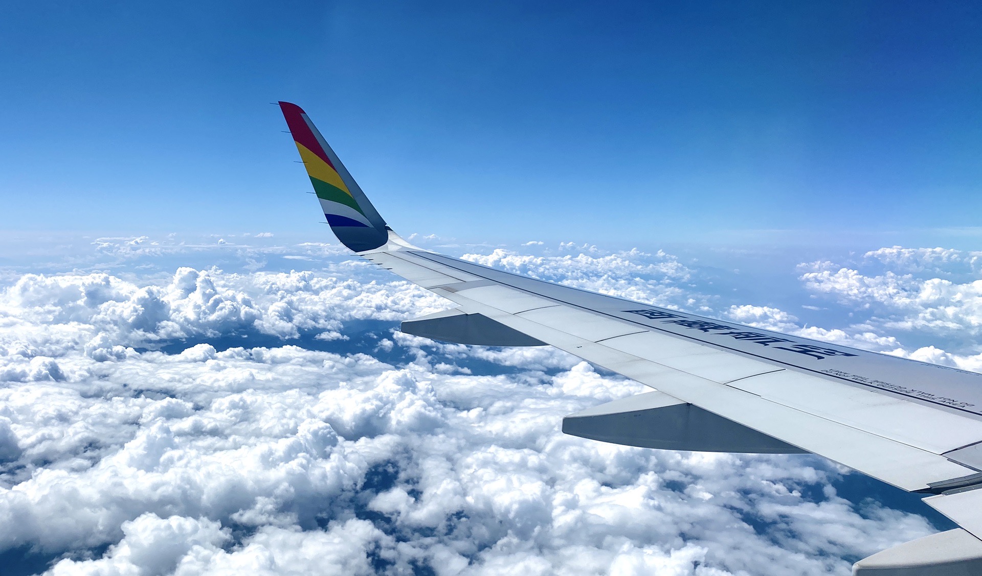 飞机驶离成都不久后,蔚蓝与洁白代替了深沉与阴霾,不觉间让人心情也变好了!选位置的时候特意给她留了一个靠窗的,她也被窗外的云海吸引!