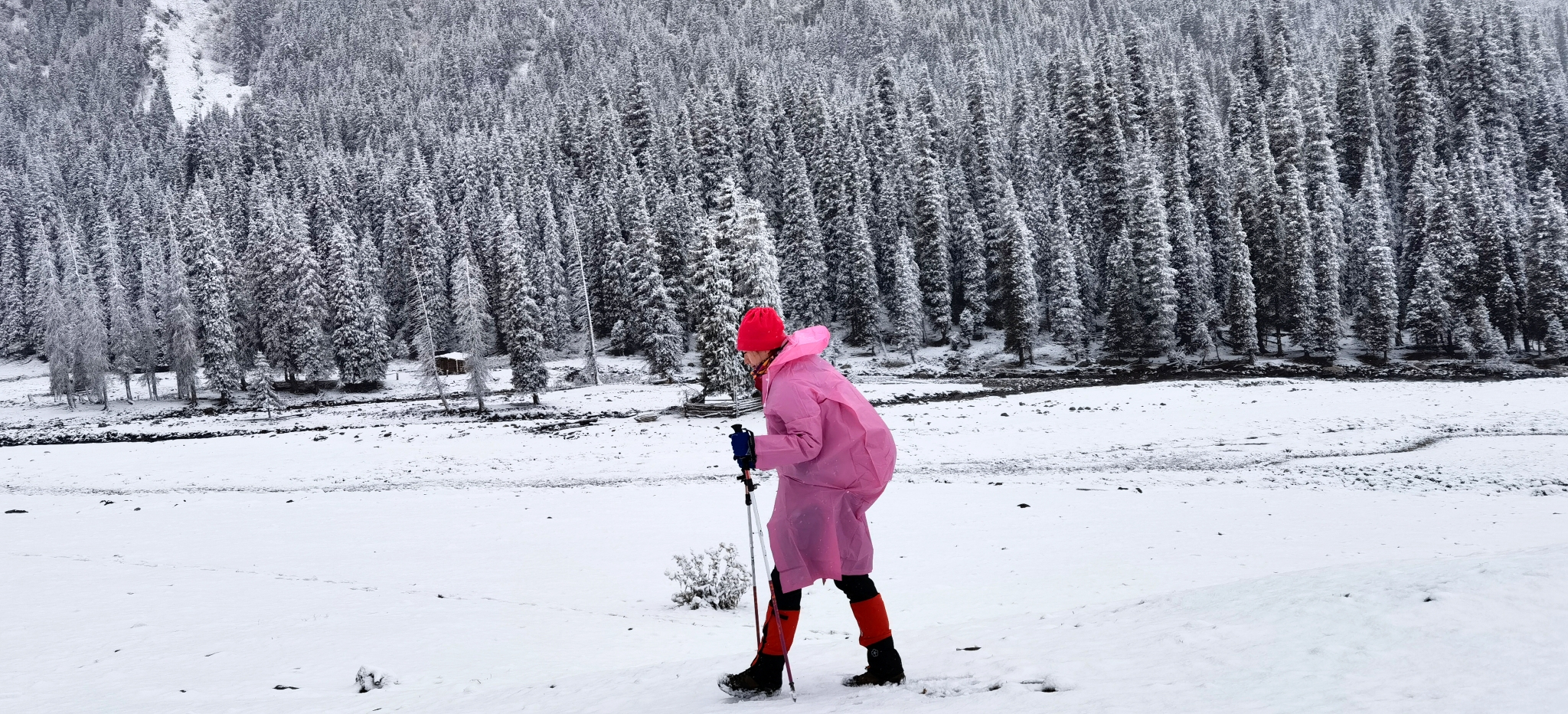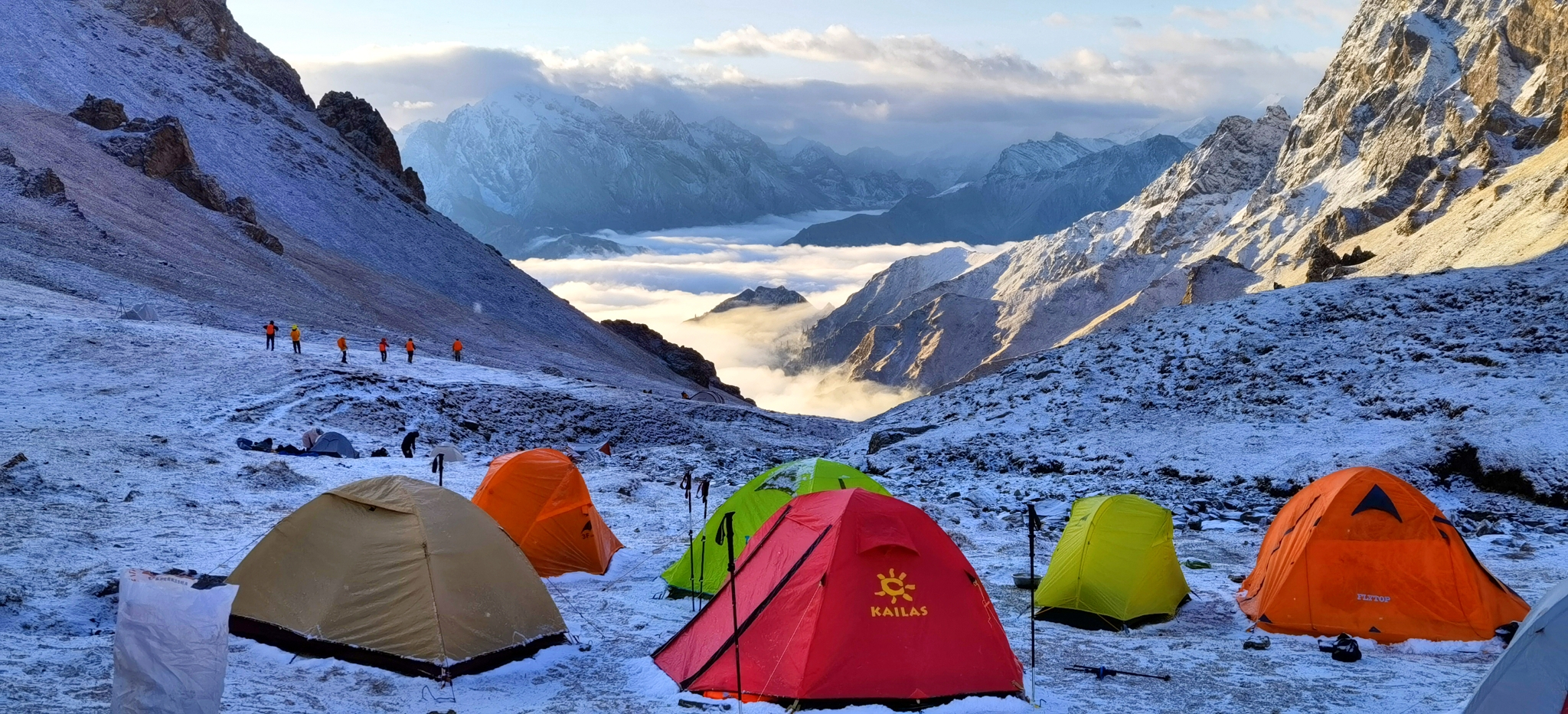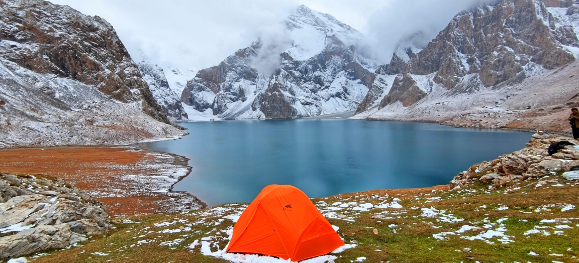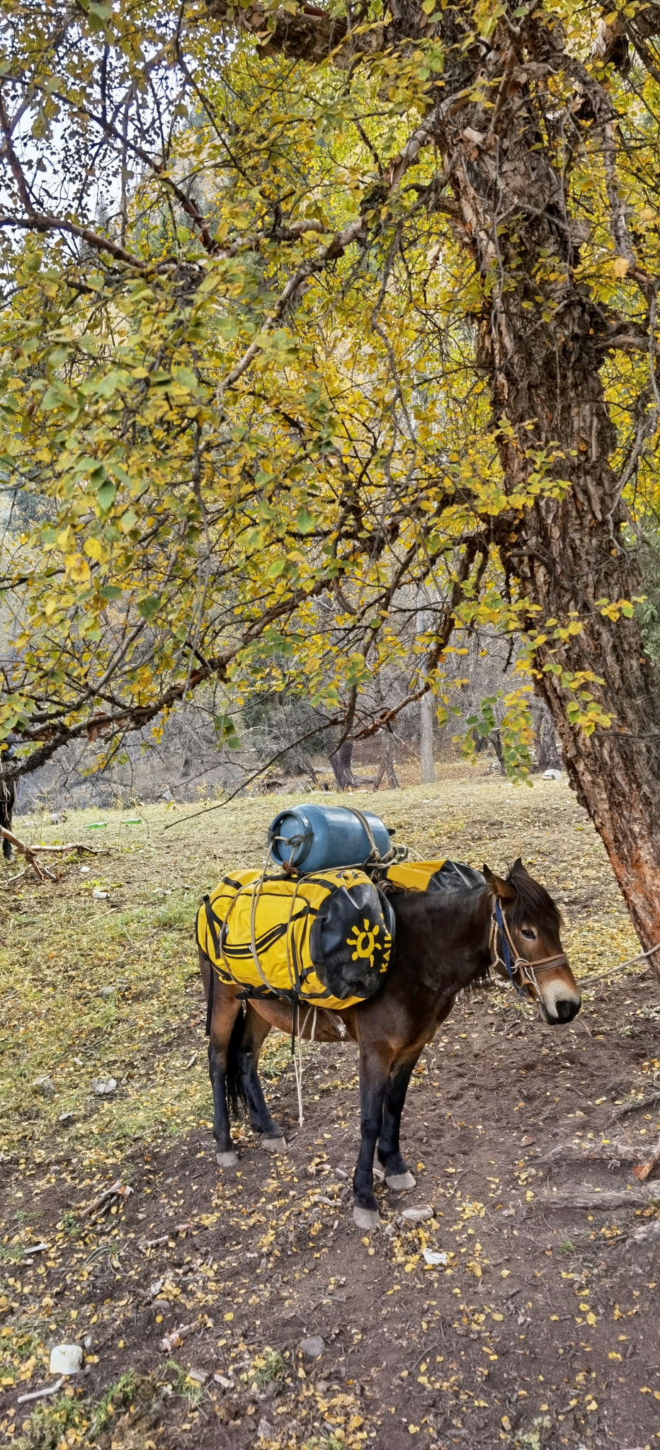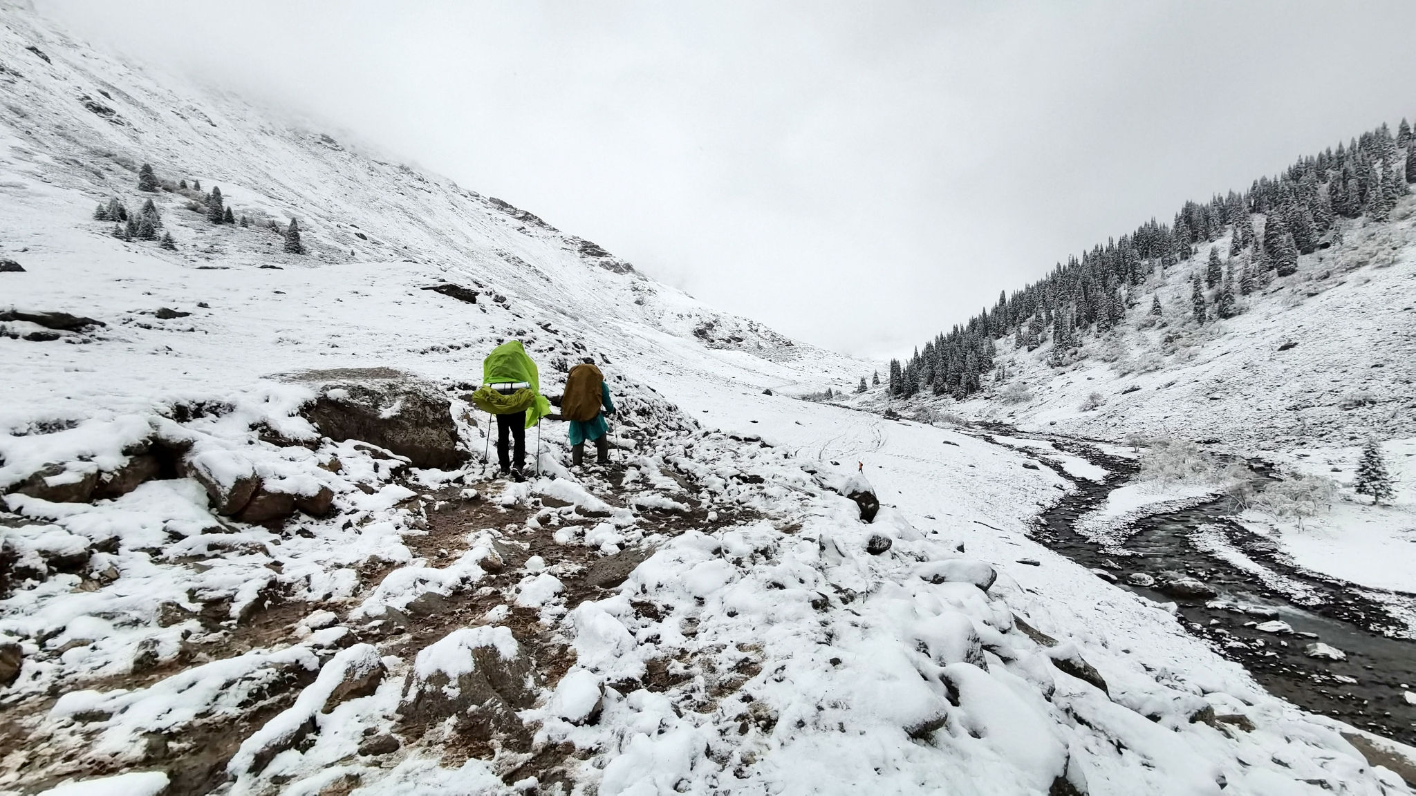 三个小时,拔升300米,抵达海拔2451米的牧民家,在院子扎营。牧民的儿子沙朗就是我们的马夫,男主人51岁,女主人一直在默默地做饭。两个卧室是大炕,也挤满了驴友。半夜一点开始下雪,早上所有帐篷都被雪覆盖,睡袋也变得非常潮湿。