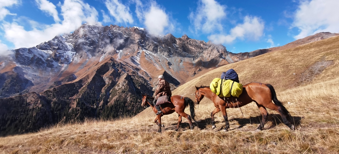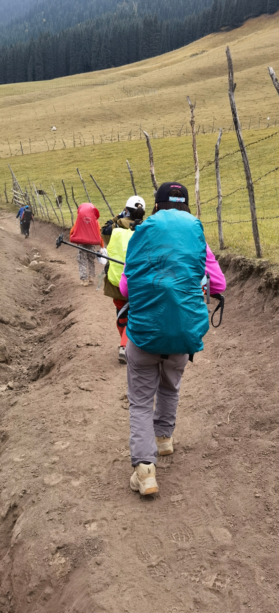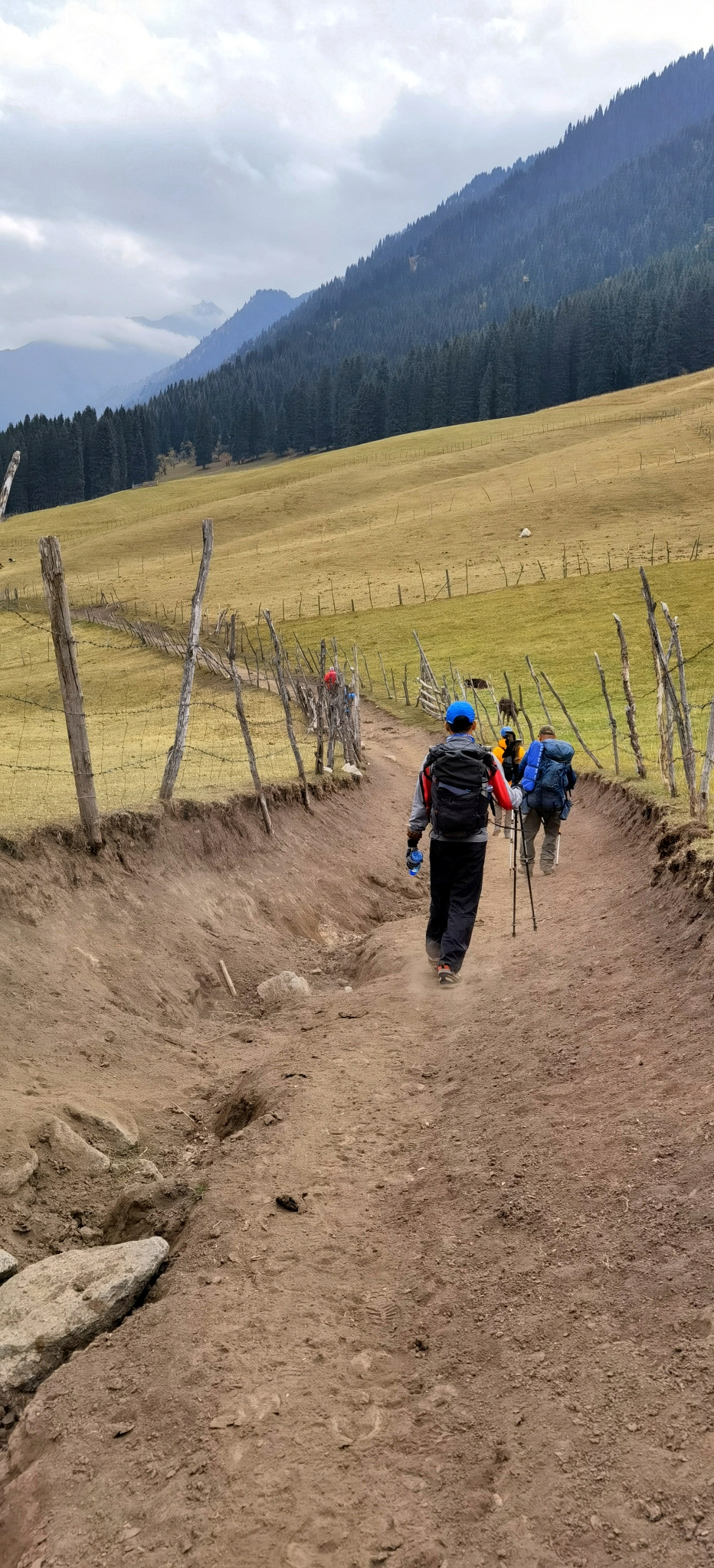 夜火车抵达伊宁站时依然夜色朦胧,大雨,在火车站经过一系列严苛的检查,做完核酸分流给琼库什台的工作人员,再次登记后一行人挤满中巴车向特克斯八卦城驶去。中途雨停,还有了阳光。在特克斯吃了美味的抓饭和烤包子,继续前往琼库什台。下午三点进村,把大背包留给马夫后开始徒步,从琼库什台后面的小路进山。