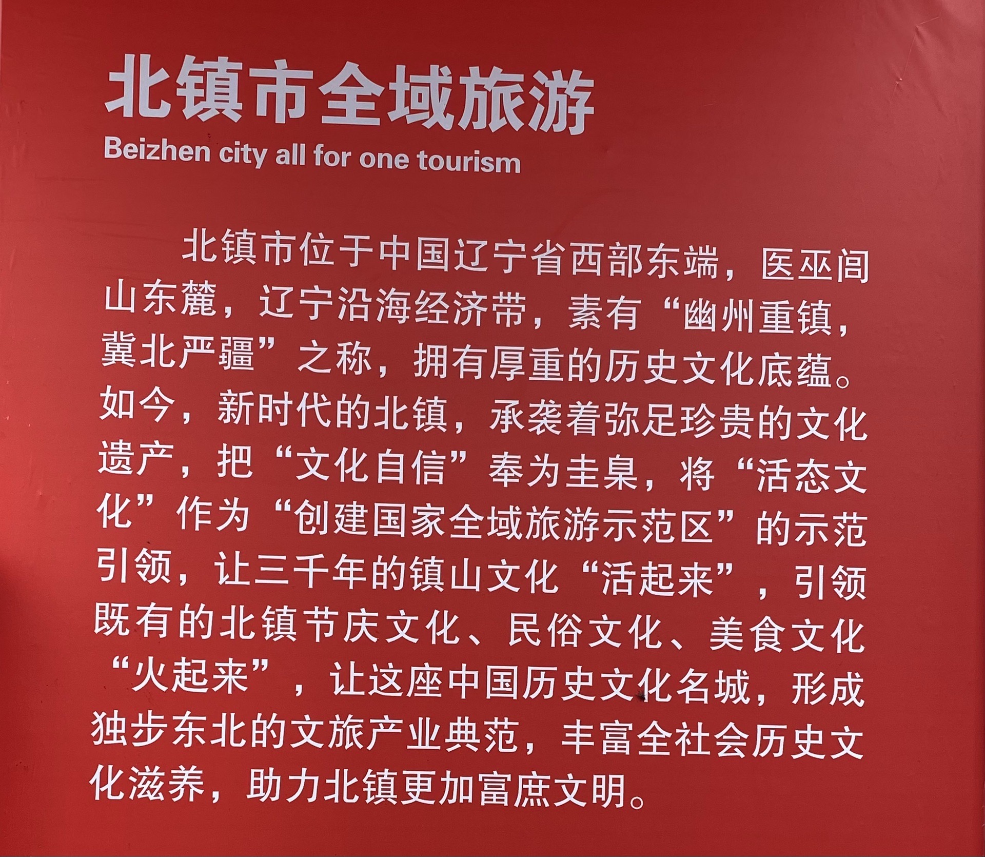 【北镇市】:辽宁省北镇市原名北镇满族自治县,属于锦州市下辖的县级市,位于锦州正北120公里赴,医巫闾山东麓。地理位置重要,素有"幽州重镇、冀北严疆"之誉。面积1782平方公里,人口53万,有19个民族,满族占62.4%。1995年撤县设北宁市。2006年更名北镇市。北镇市在明朝是广宁城,大将袁崇焕等曾在此驻守。景点:医巫闾山风景区、崇兴寺双塔丶北镇庙丶李成梁石枋、青岩寺等;历史名人:年羹绕;特产:葡萄、北镇鸭梨、水陷包子、北镇猪蹄、沟帮子熏鸡。