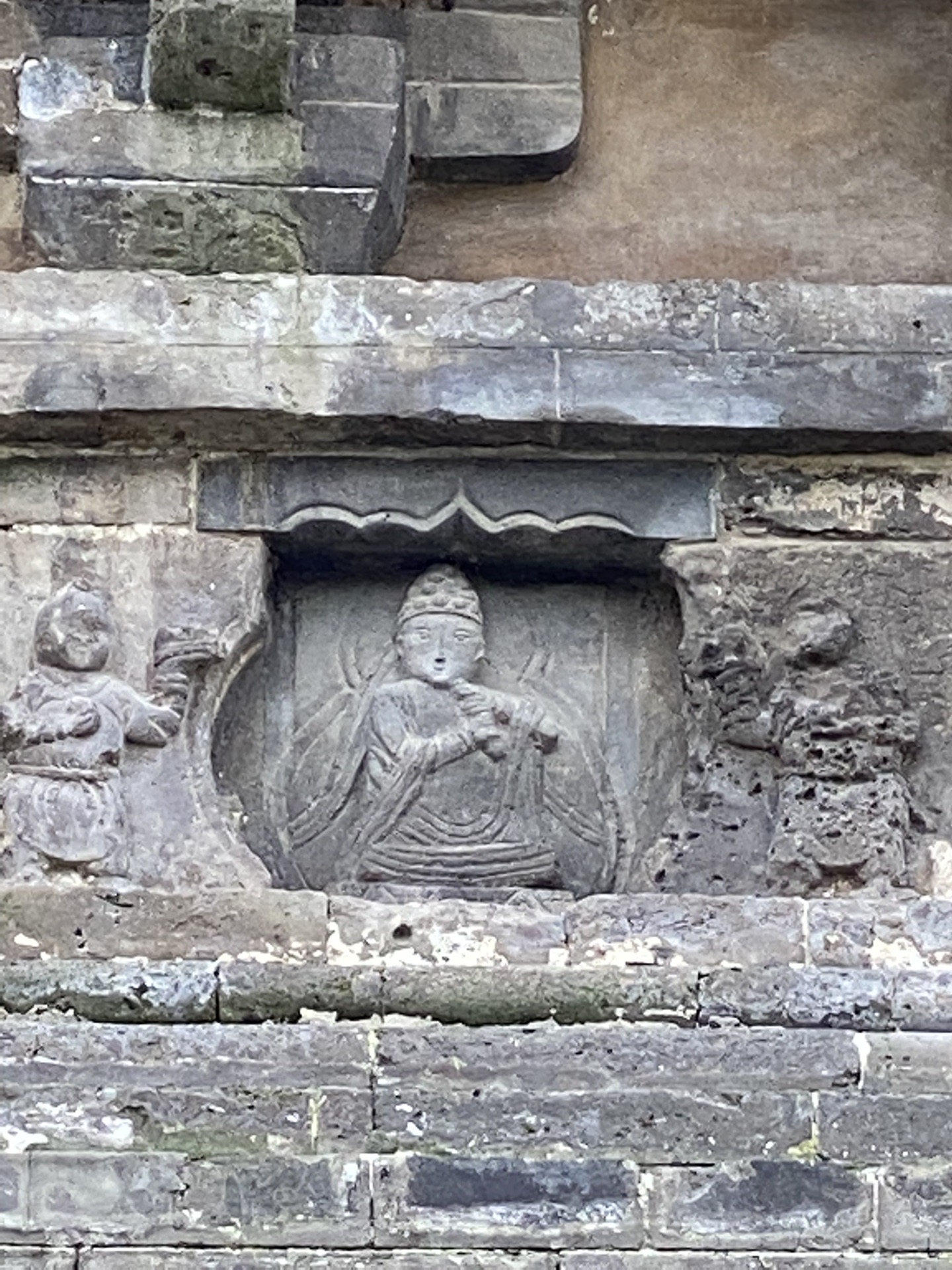 正东面中间乐伎与右侧乐伎之间的罗汉浮雕。