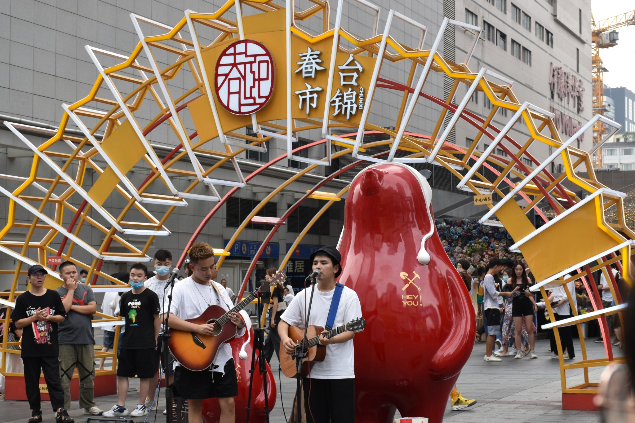 的印记,包括各种街边广告牌、商家店铺酒店的名字、墙头的涂鸦、广场/门口的雕塑,等等,真不愧为熊猫的故乡。