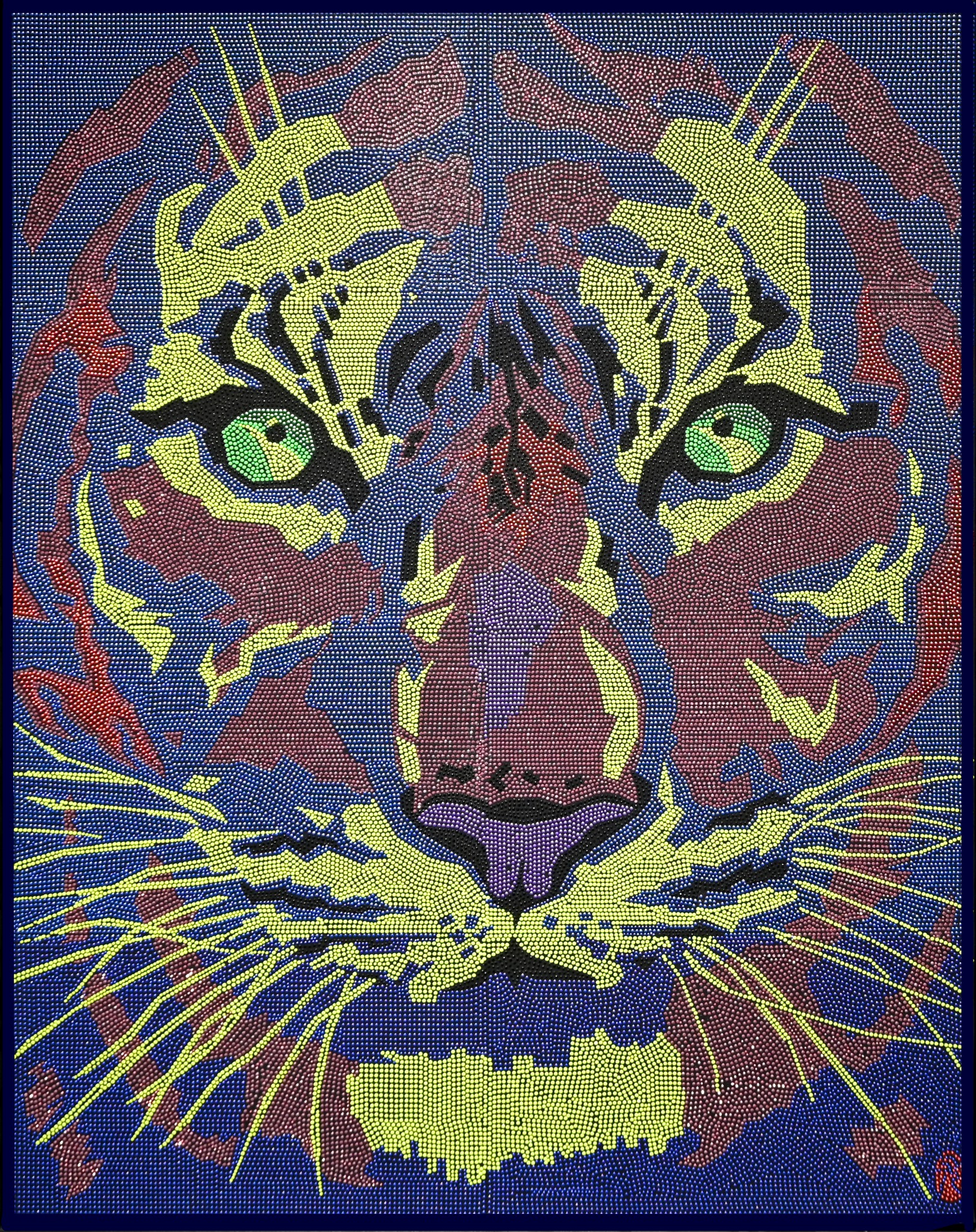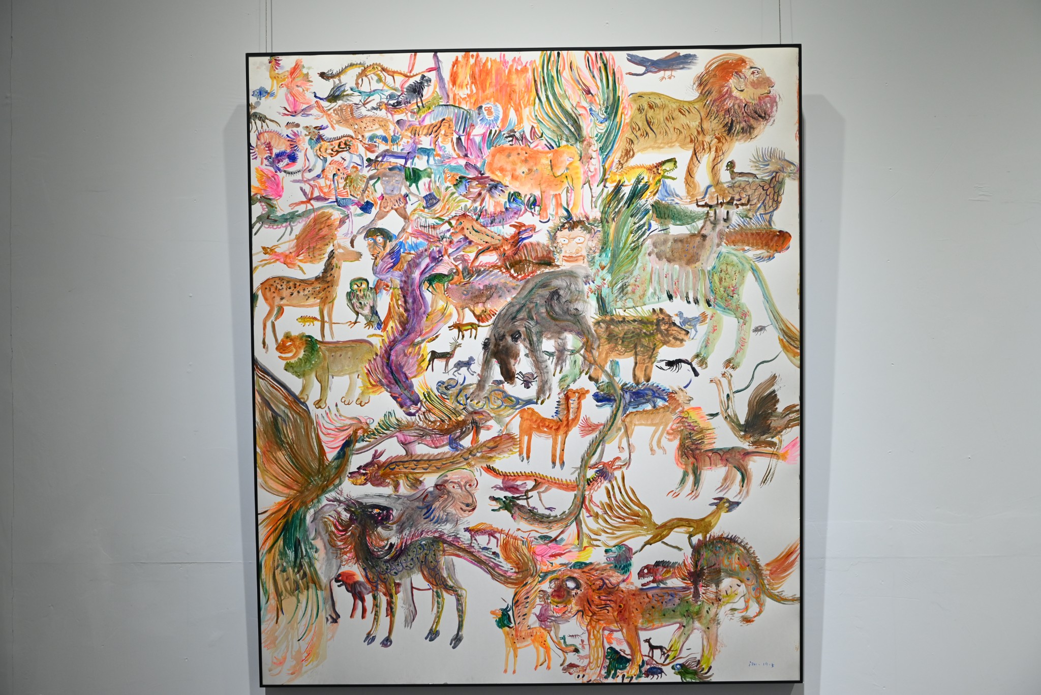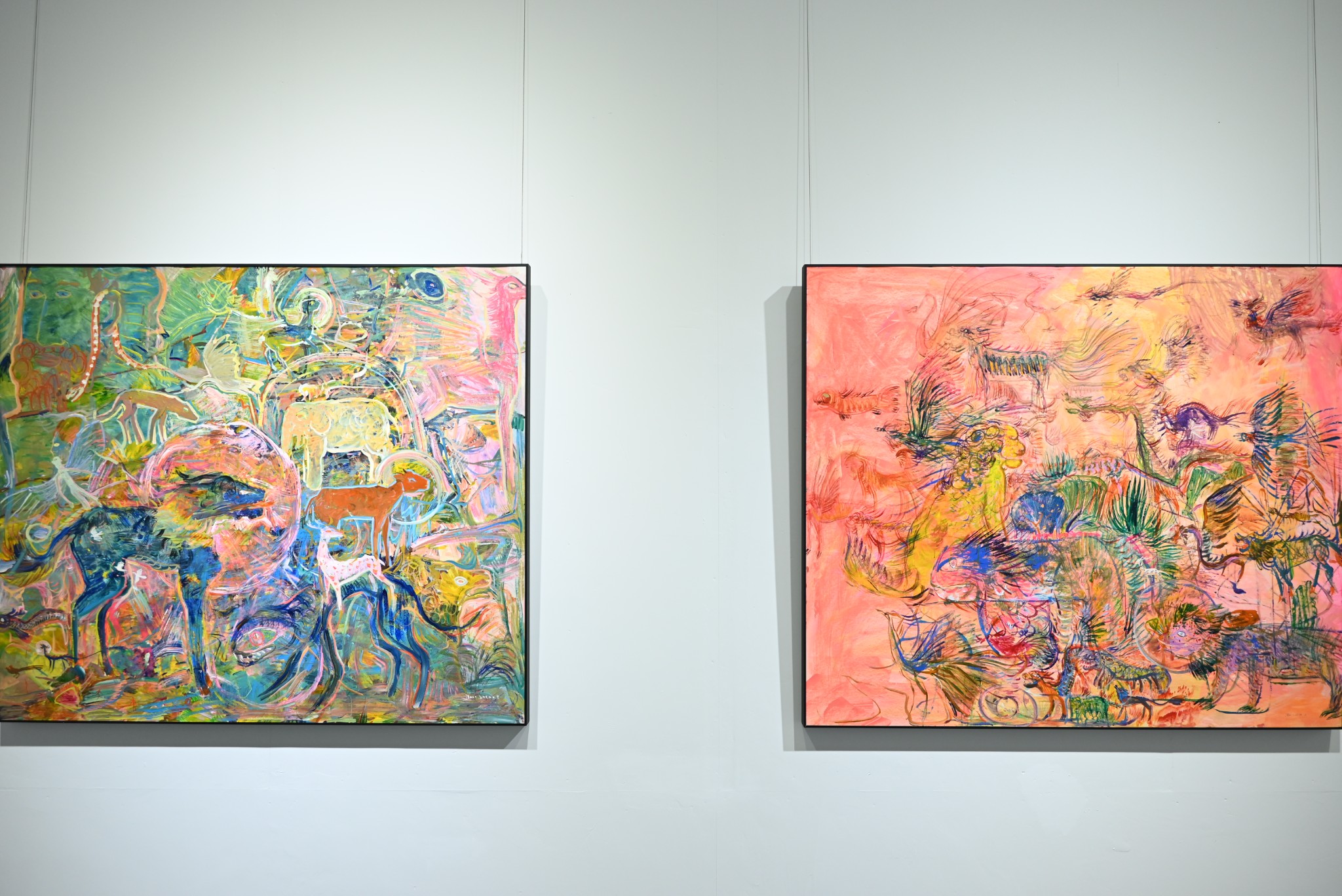 这一系列的作品似于混沌初开中诞生,带着未经打磨的稚拙感,生命力与绚烂感,宛如上古先民吹响狩猎的号角传来的野性召唤,唤醒了人们的图腾追忆和上古远思。