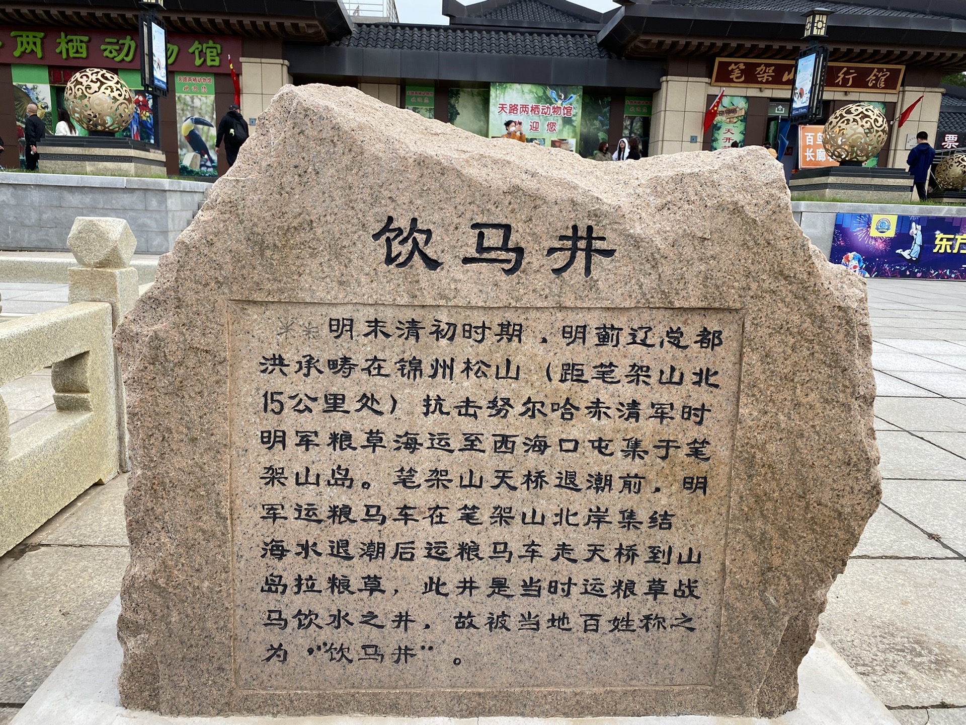 【饮马井】:明末清初,大将洪承畴率兵抗金,将笔架山做为粮草辎重存放场,落潮时运输粮草的车马上岛运粮,此井就是为饮马而开掘。
