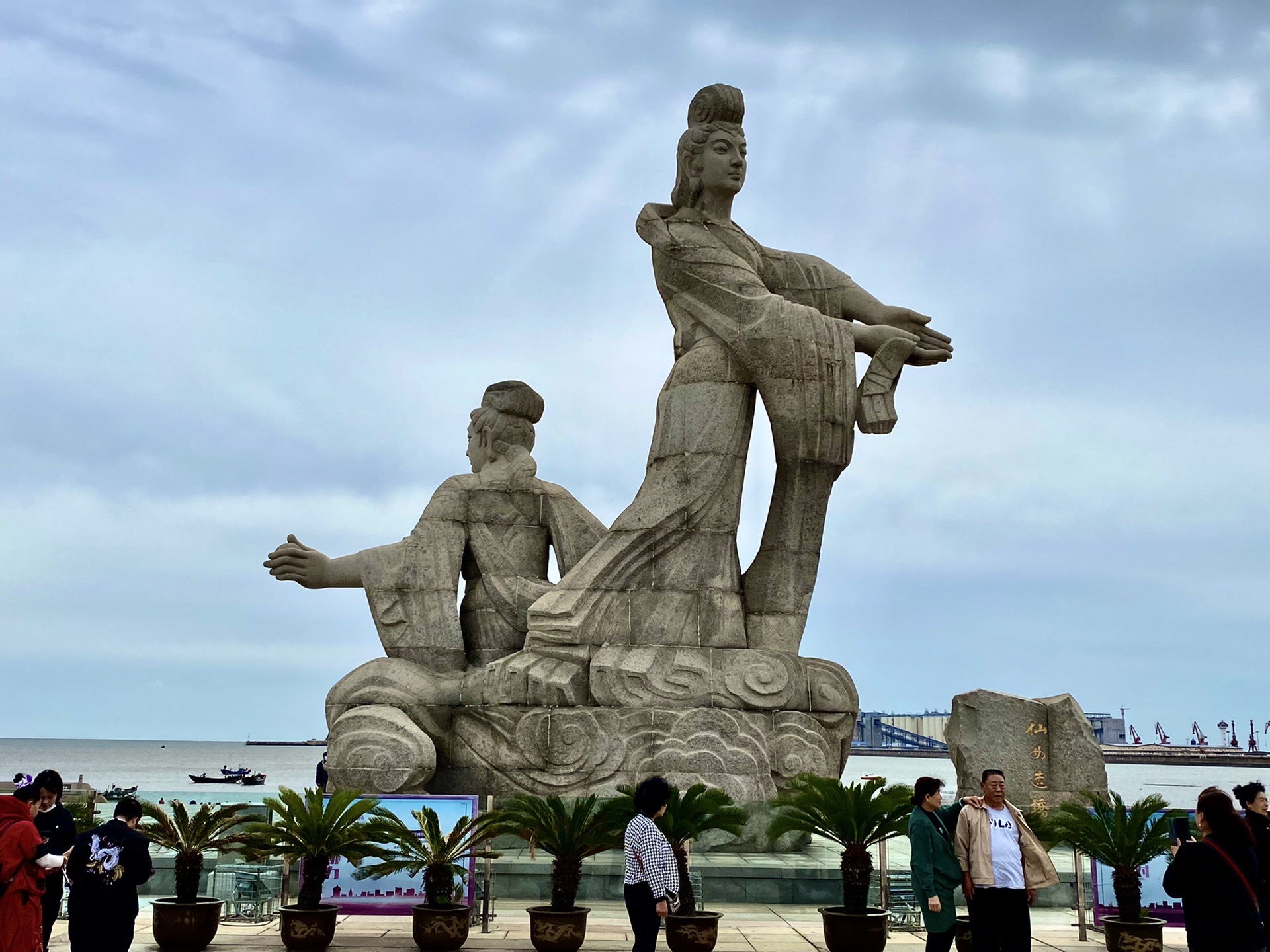 仙女造桥雕像,高14.2米,由108块雕刻的花岗岩组成。