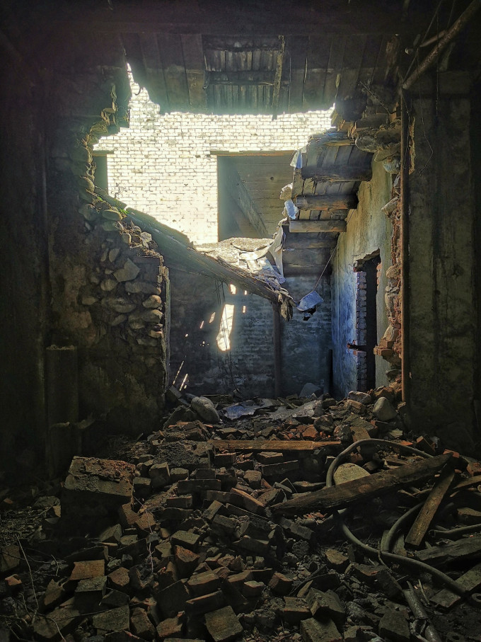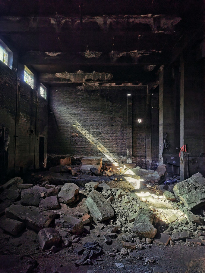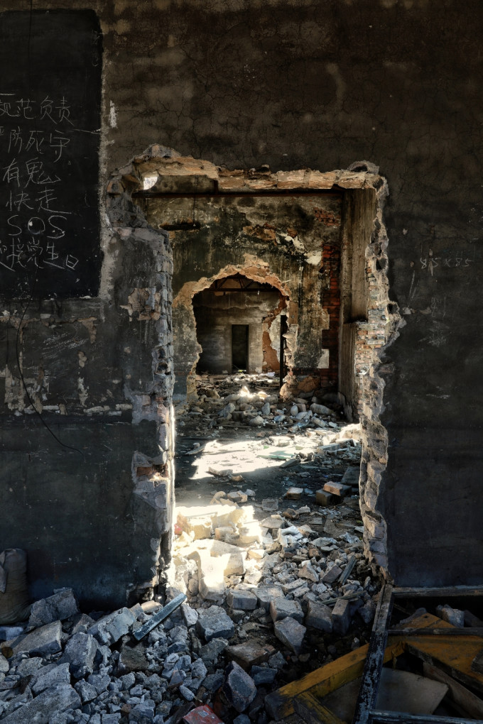 满地碎石、尘土和家具残骸,都呈现出煤矿独有的黑乎乎的基因特色。