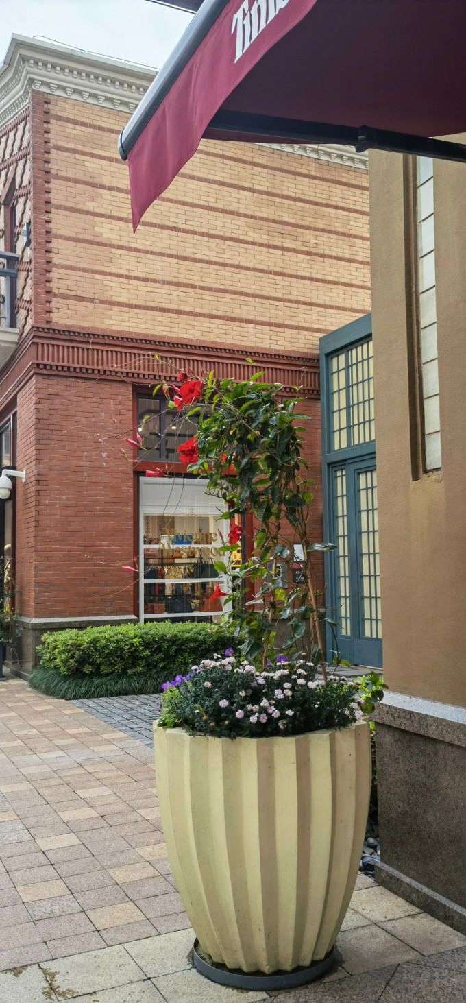 特别赞的是商家门前的绿植,因其充足的空气水气滋润,或生机勃勃~绿油油的难辨真假;或婀娜多姿~造型舒展而随意。