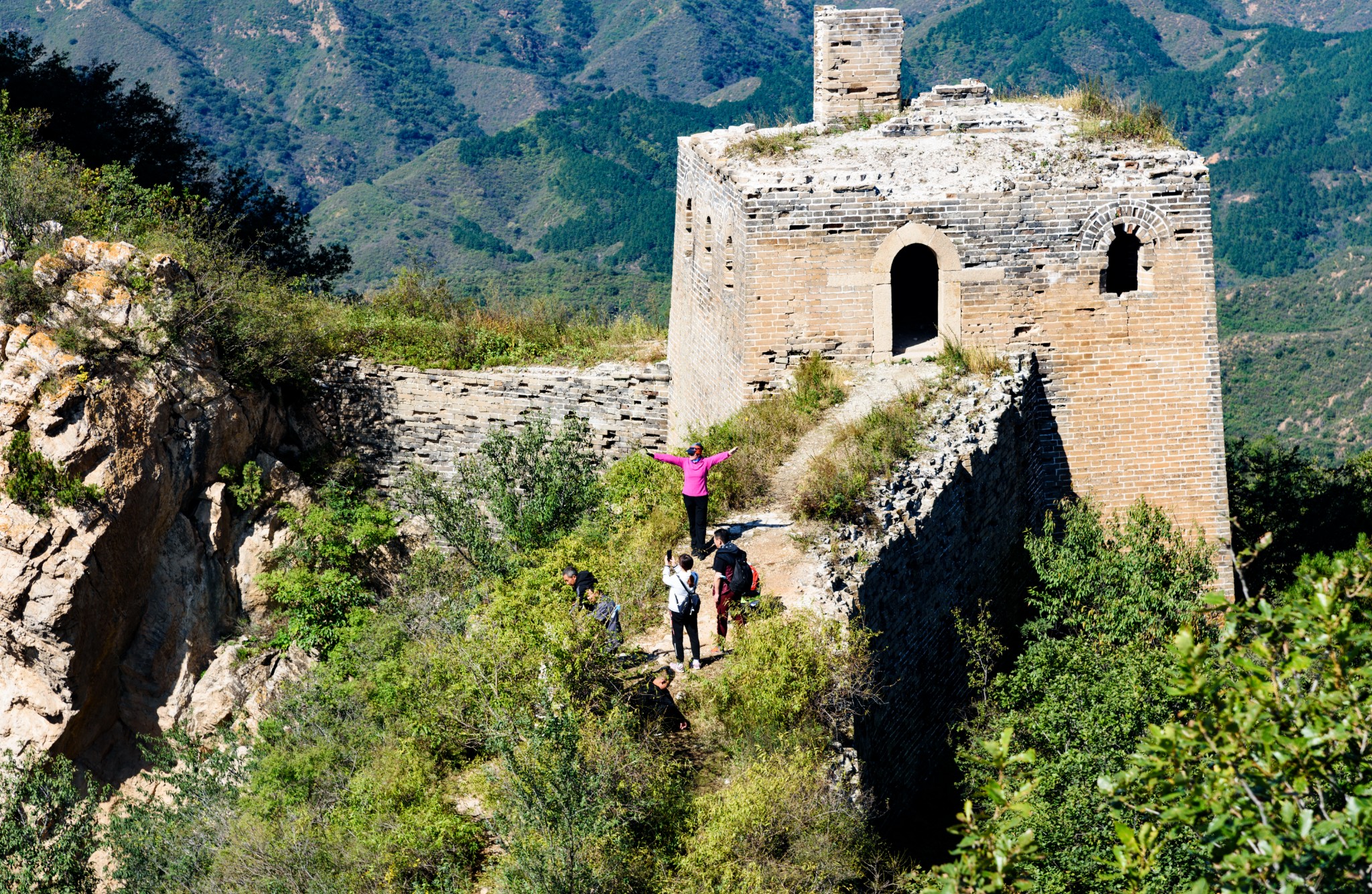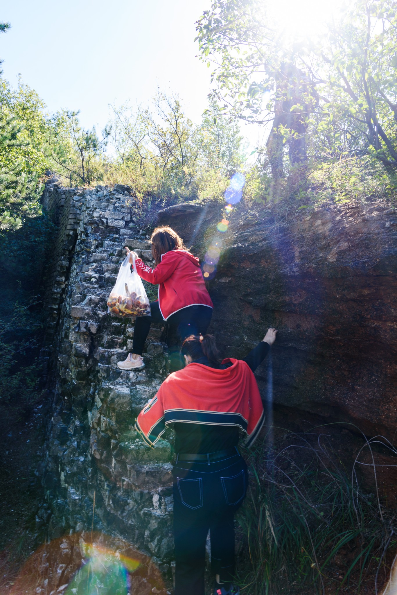 用时不多,收获不少,一行人提着意外得来的战利品继续爬山。没多久,来到了城墙脚下。