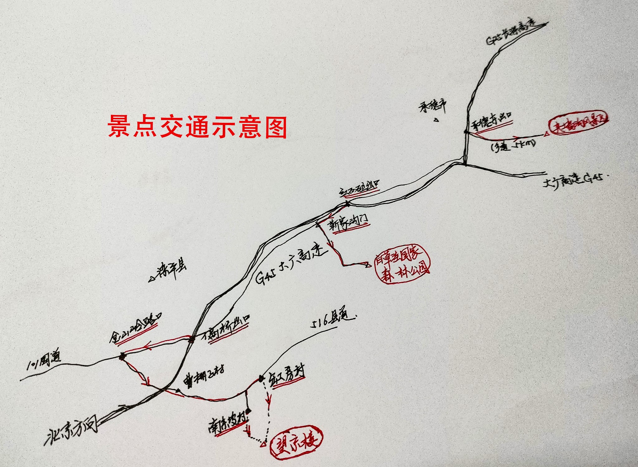 景点自驾路线可参照下面手绘草图