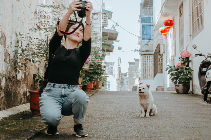 然后我们就和这条汪星人相遇了,大概是没有主人的,跟着我们走了半个多小时,一对着镜头就会很自觉地举起笑脸,笑得人心都化了。可惜我们手边没有任何食物,给我们白白当了一回道具。