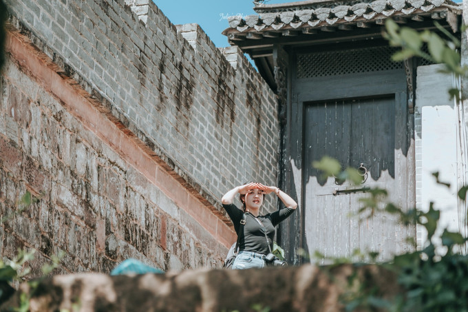 我从来没在徽州古城碰见过这么通透的天气,以致于之前一直被我忽略的城墙,这次突然发现:哎这地方怎么那么适合拍照呢!