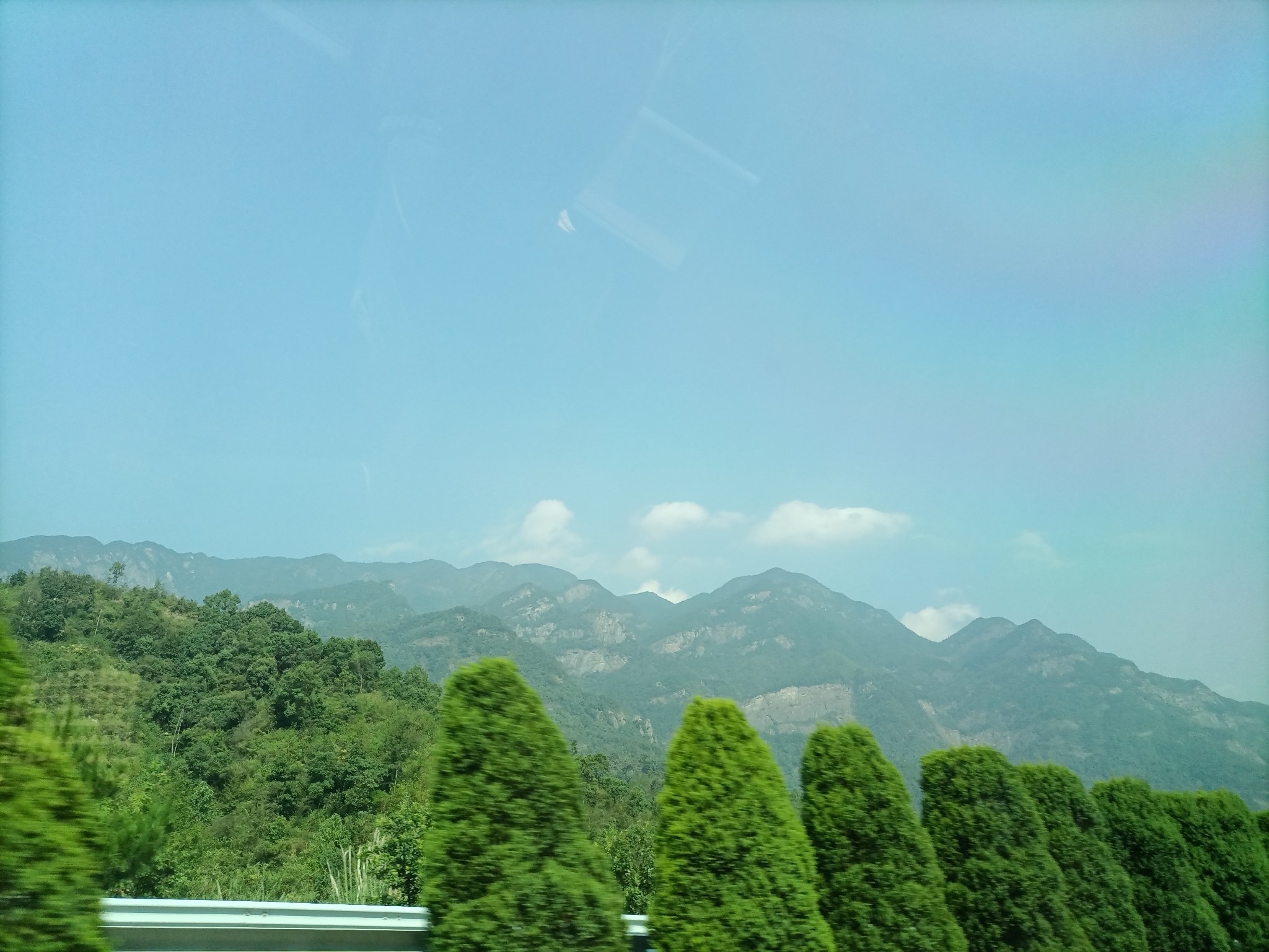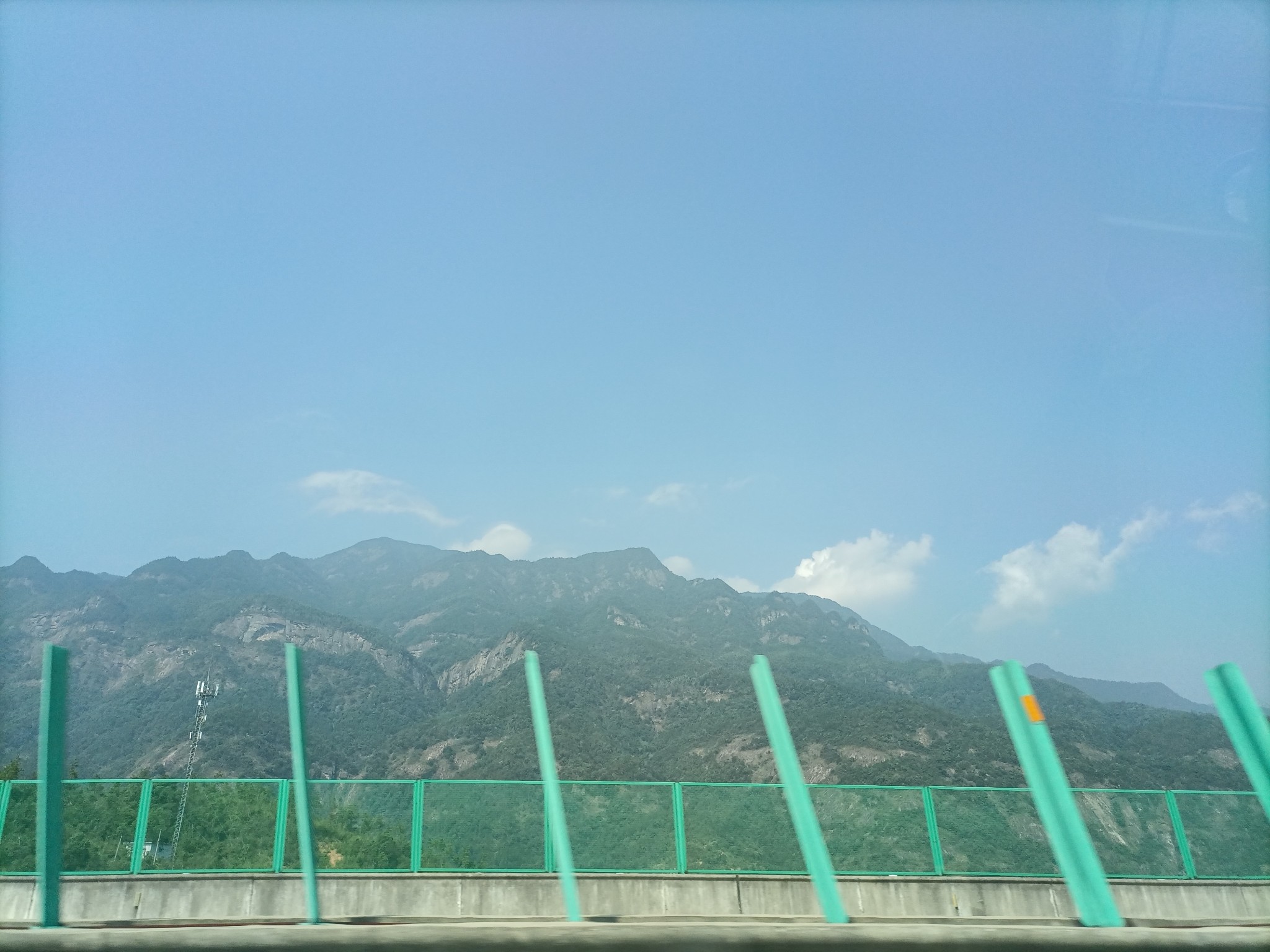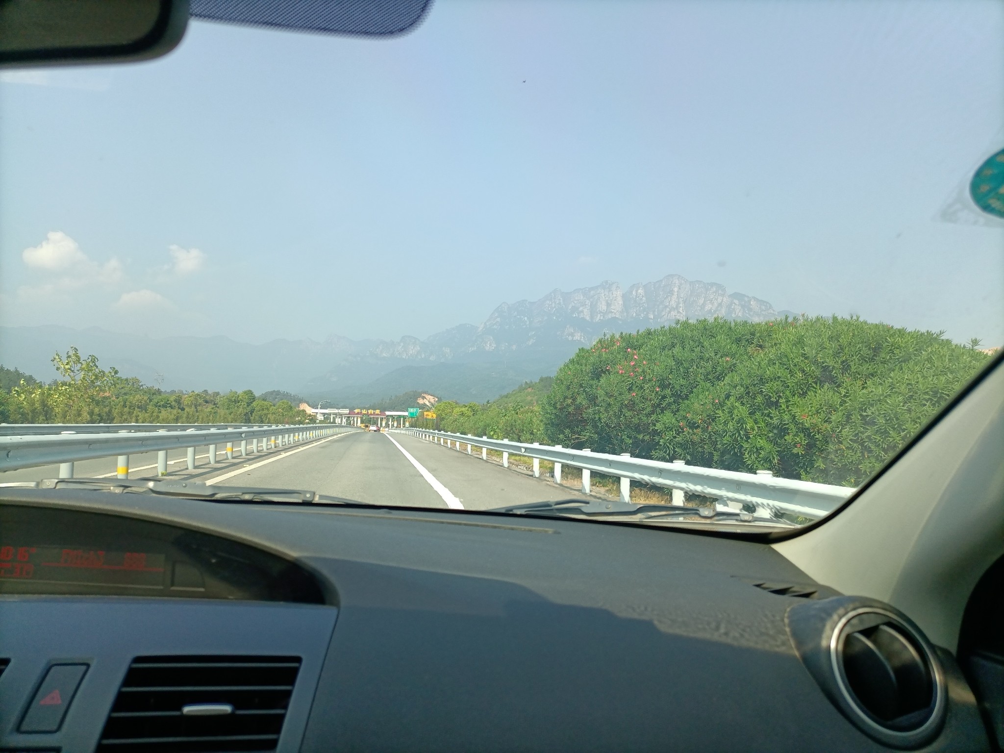 马上下高速了,虽然是大晴天,但远处的能见度不是很高。