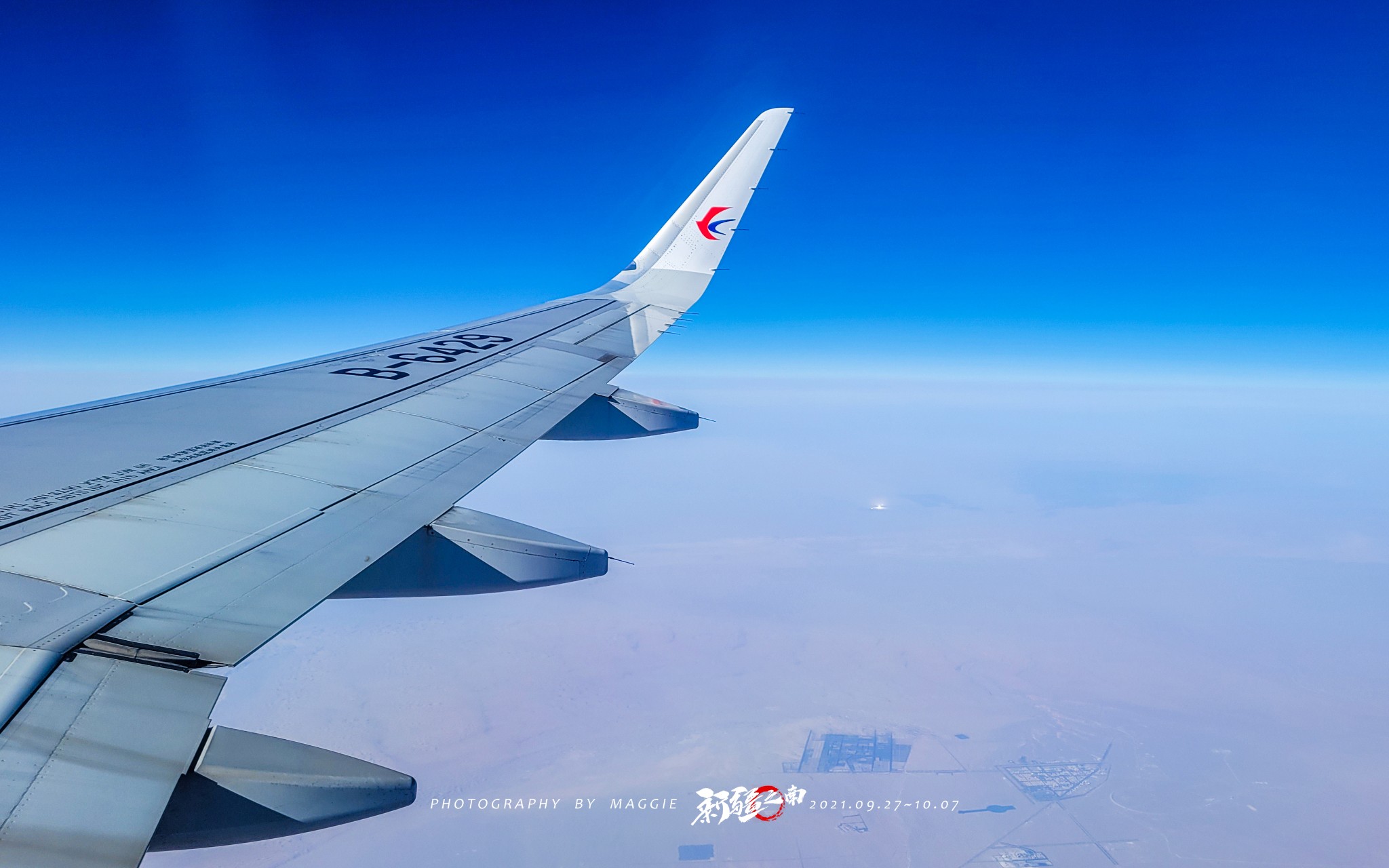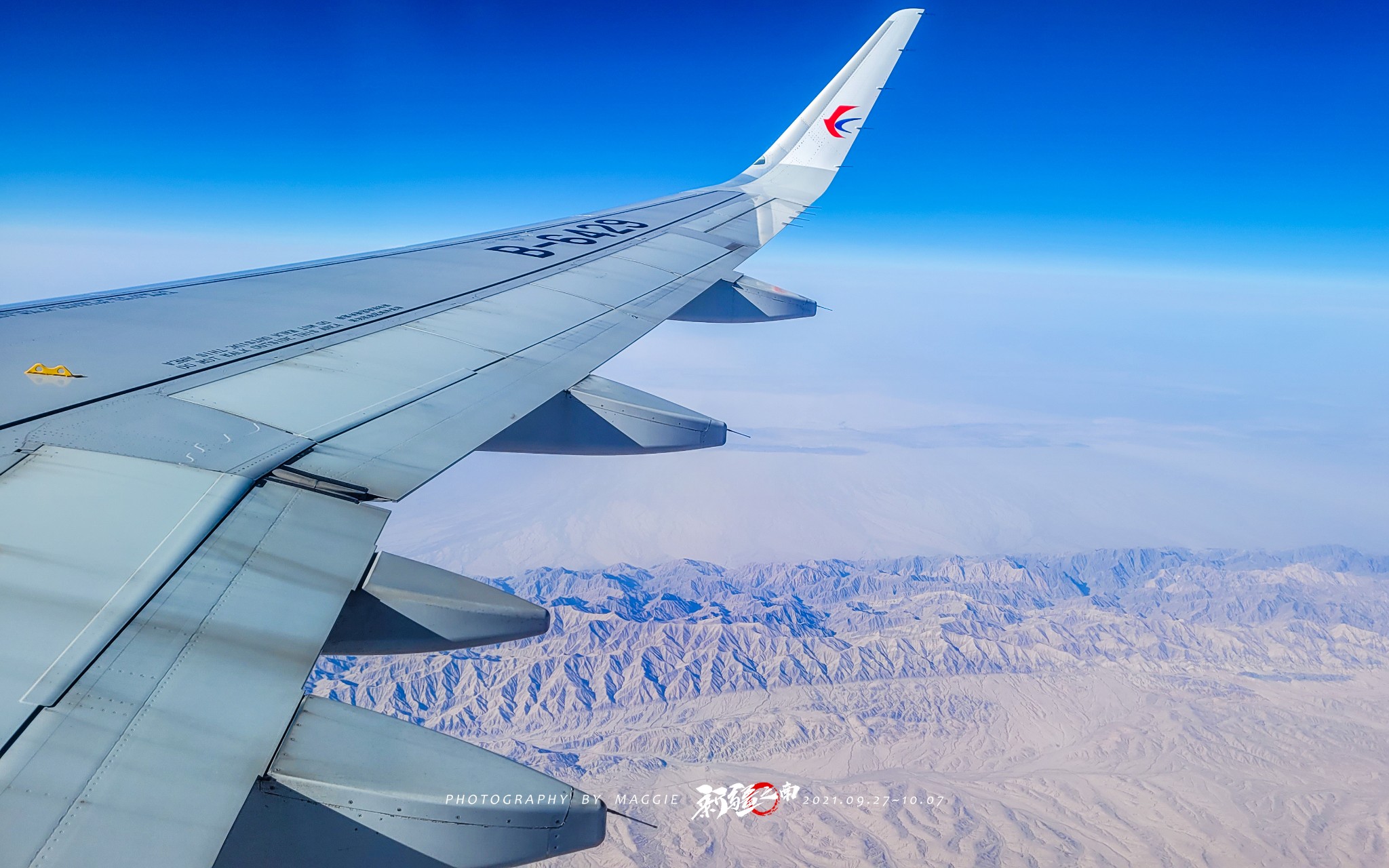 飞机沿着熟悉的河西走廊飞,万里晴空,这一定是一趟美好的旅程。