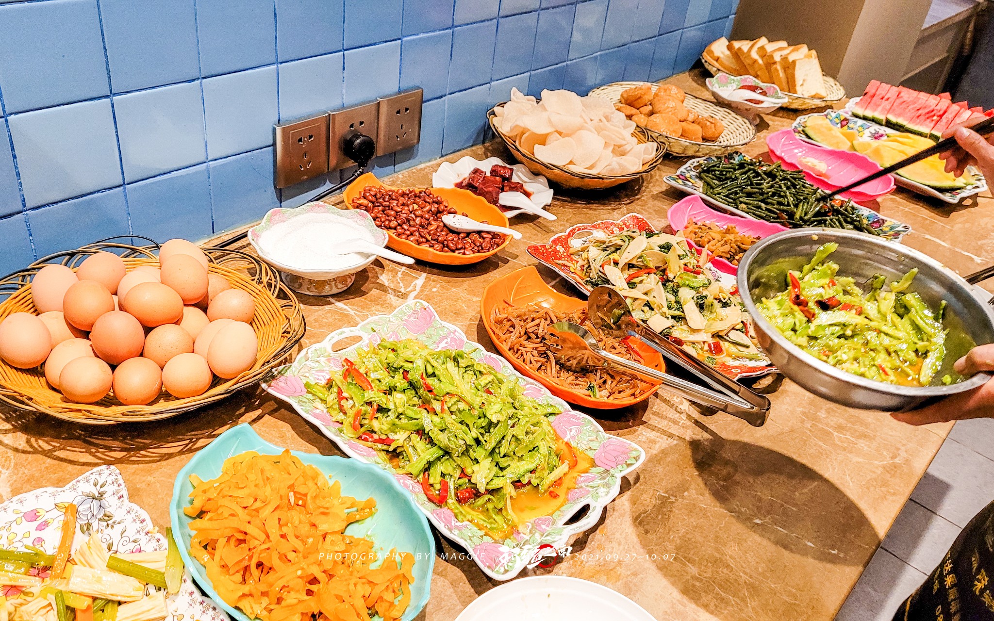 酒店的早饭除了荤菜没有,种类还是很多。