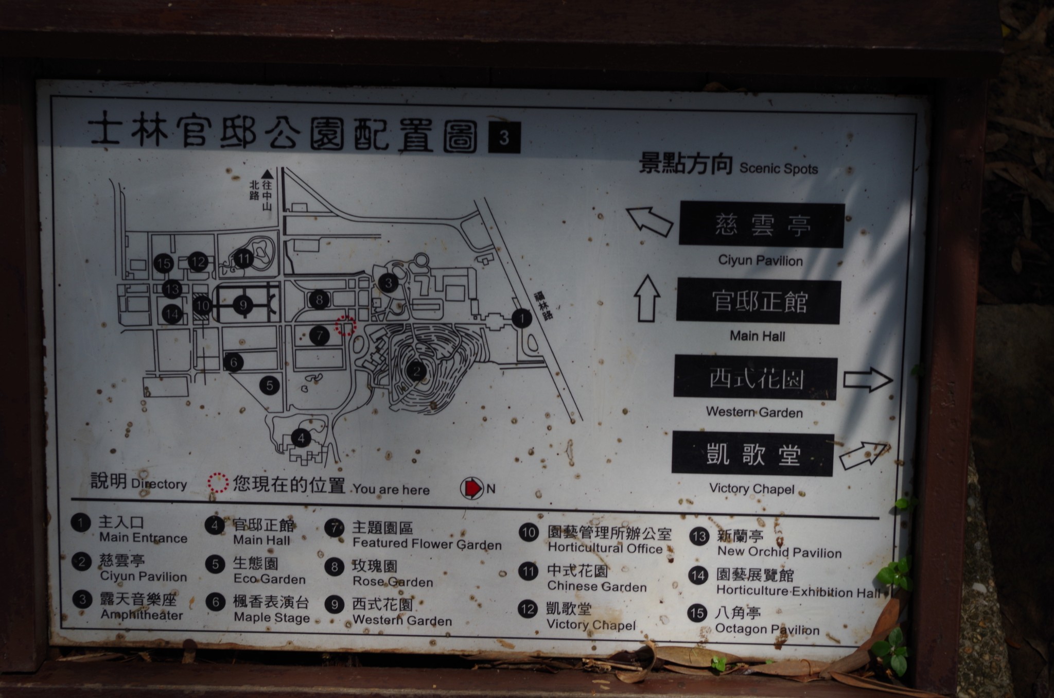 转了一圈,才看到士林官邸公园配置图。除官邸正馆外,另有慈云亭、玫瑰园、西式花园等处可供参观。