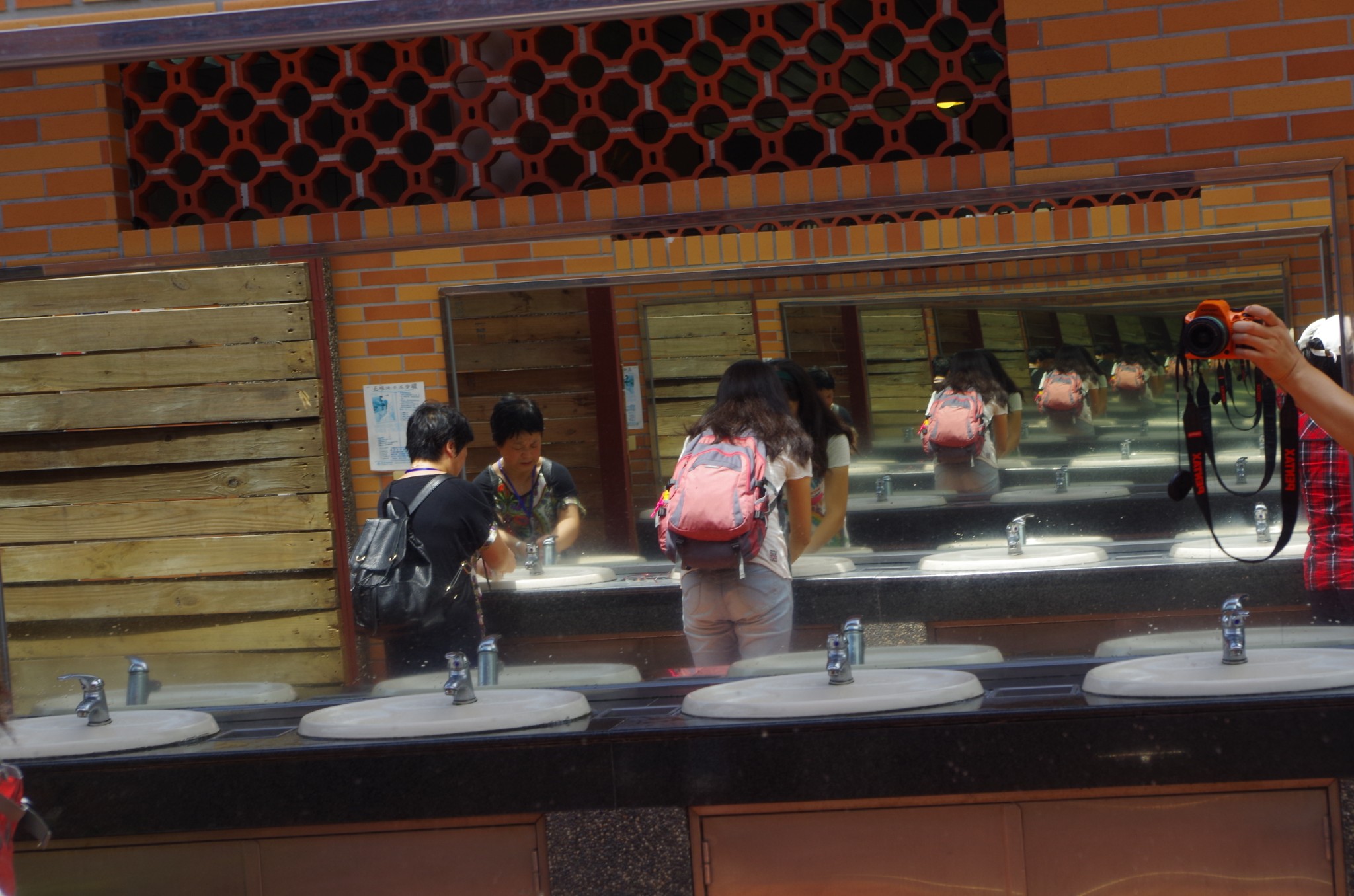 景区的卫生间很宽敞,洗洗脸,带来一丝夏日清凉。长发加炎热,总能让自来卷的直发自带烫发效果。