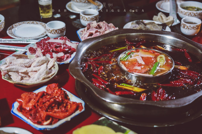 “凤鸣火锅”,这是一家开在居民区的火锅店,到店的都是一众儿当地人,那就放心了。丫头们点菜,都是很新鲜的牦牛肉、牛杂,踩不了雷。