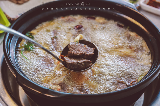 “巡牛纪清汤牦牛肉”,第一次在牛肉汤锅里吃到大坨大坨的牛肉,有多大?在你捞起一块肉后,需要故装优雅地用刀叉分割。