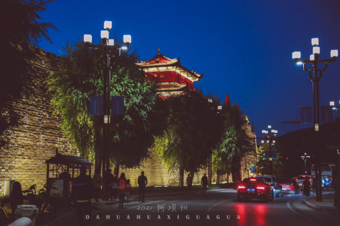夜幕下的古城墙。
