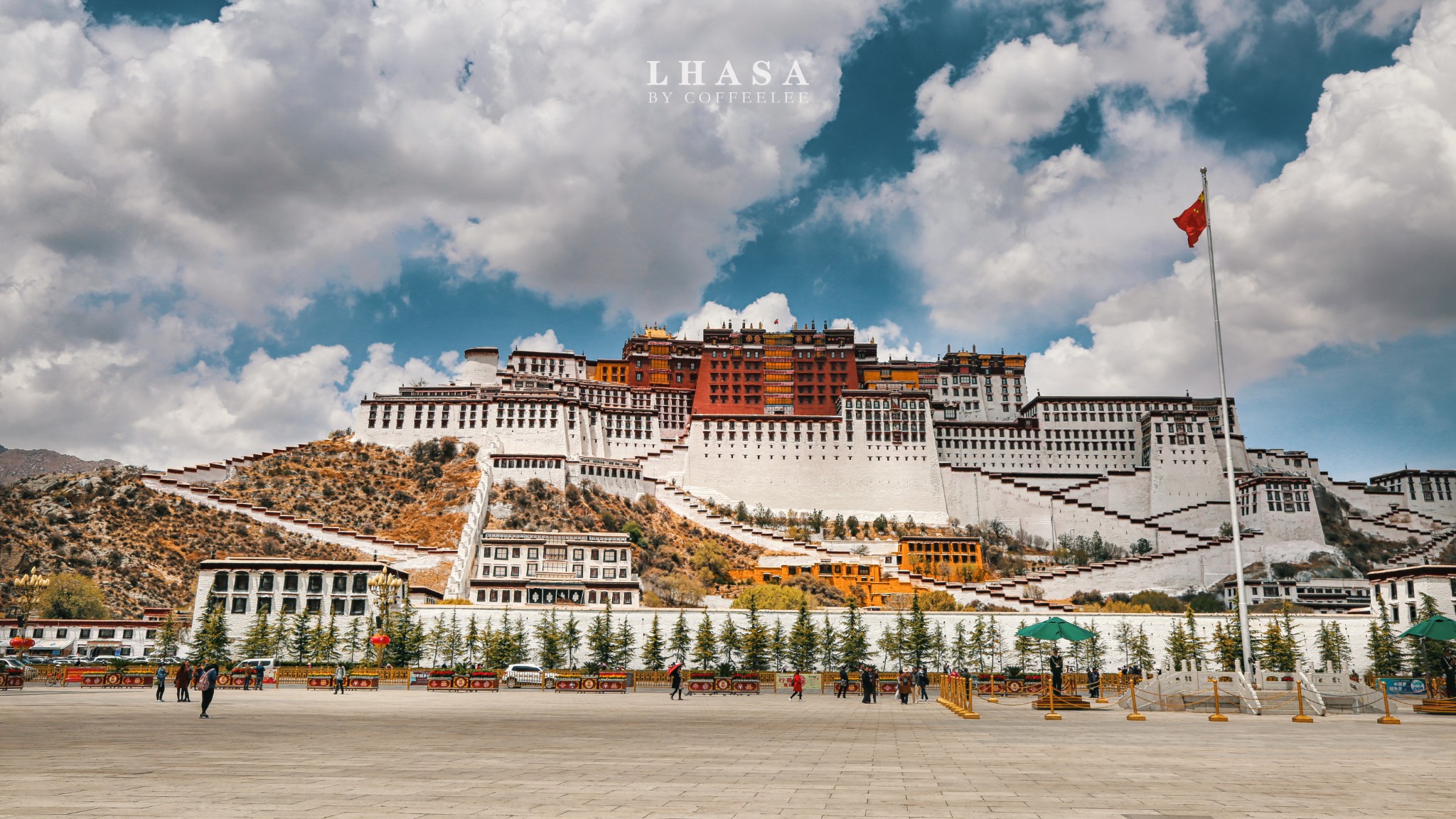 雨淅淅沥沥的下着。小曾师傅和刘哥就在远处拍照。我将冲锋衣帽子拉起来,站在广场正中央,瞩目良久。这一刻,布达拉宫好美,外墙好白。我的皮肤却好黑,眼眶好红。。
