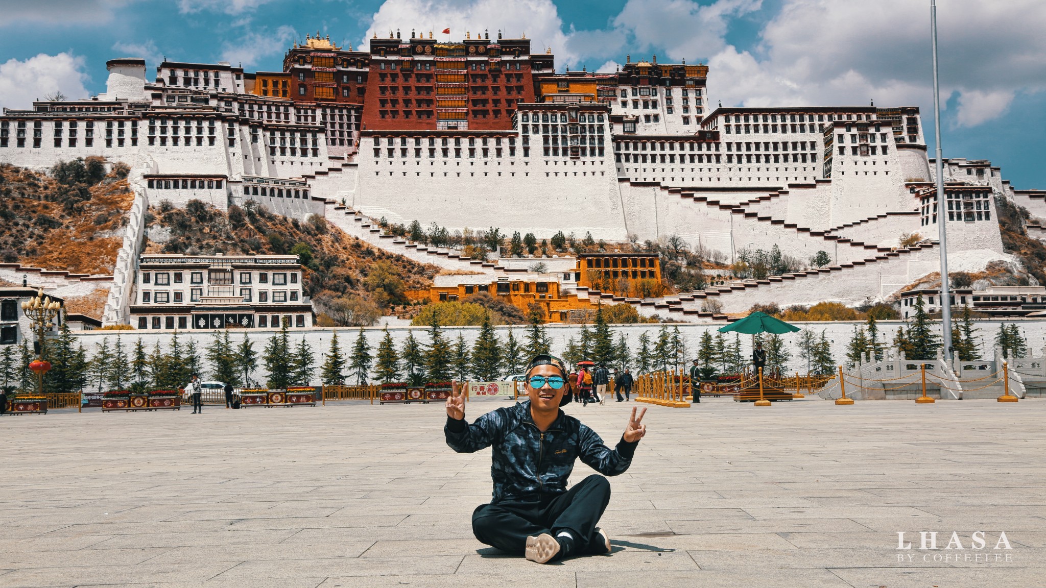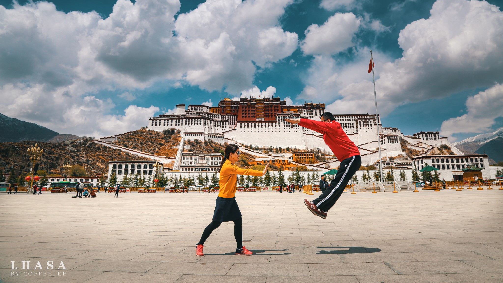 下了机场巴士,抵达布宫广场后,我见到了先于我抵达拉萨的阿辉和阿杰。阿辉是我的大学室友,也是我这次裸辞后在北京的“依靠”。阿杰则是他未过门的媳妇。他俩都是第一次来拉萨,显得异常兴奋。于是乎,二人开始了在布宫前的各种“摆拍”。画面大概是这样的。。