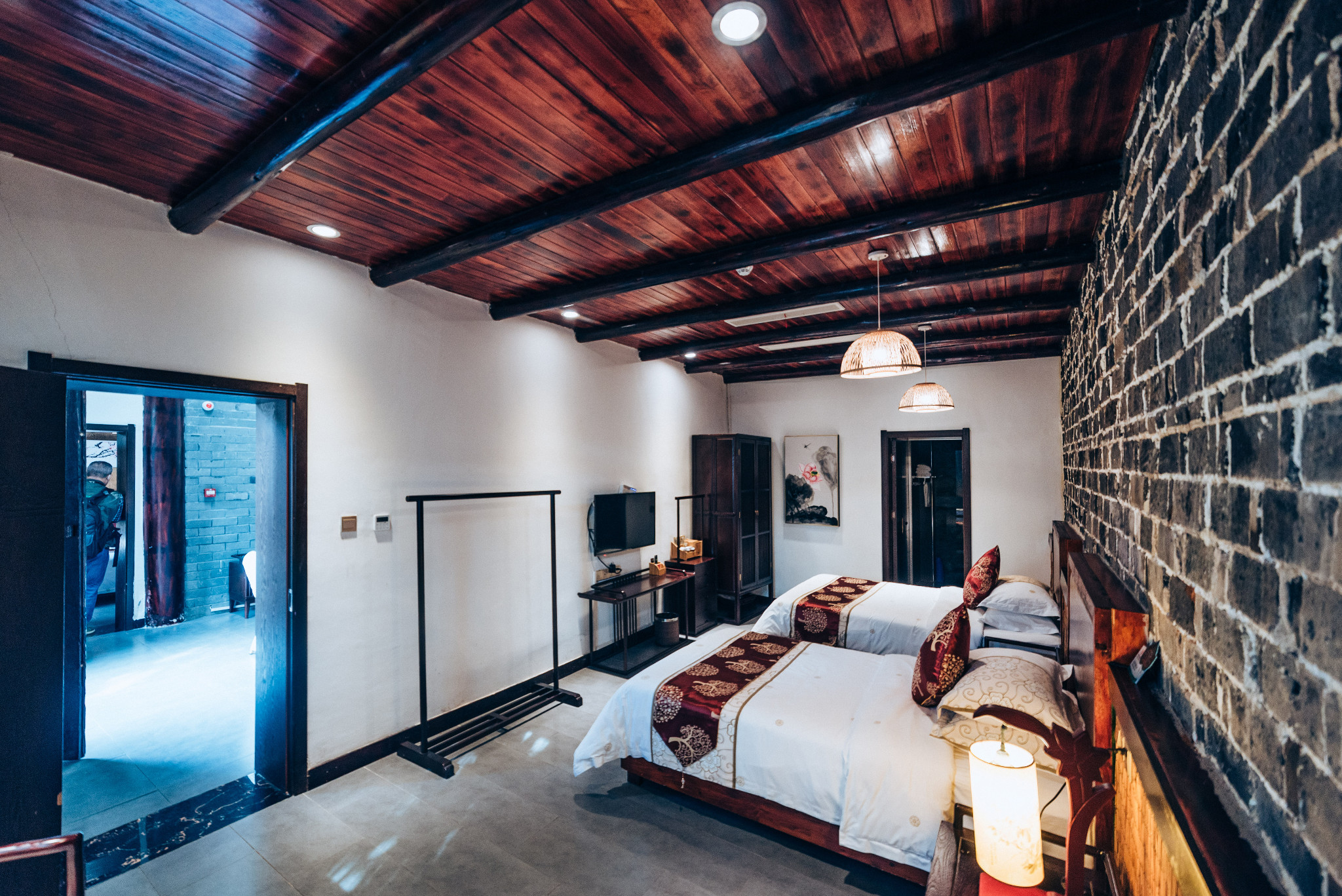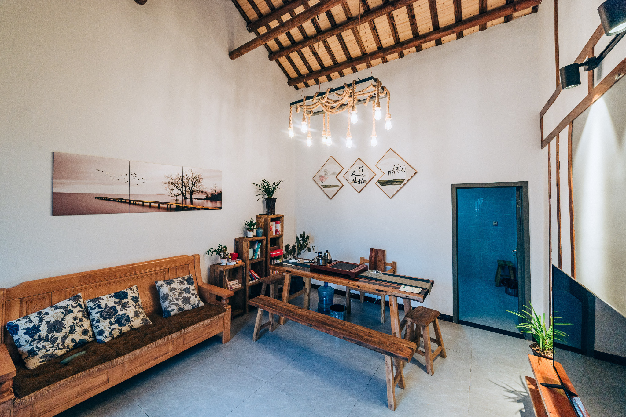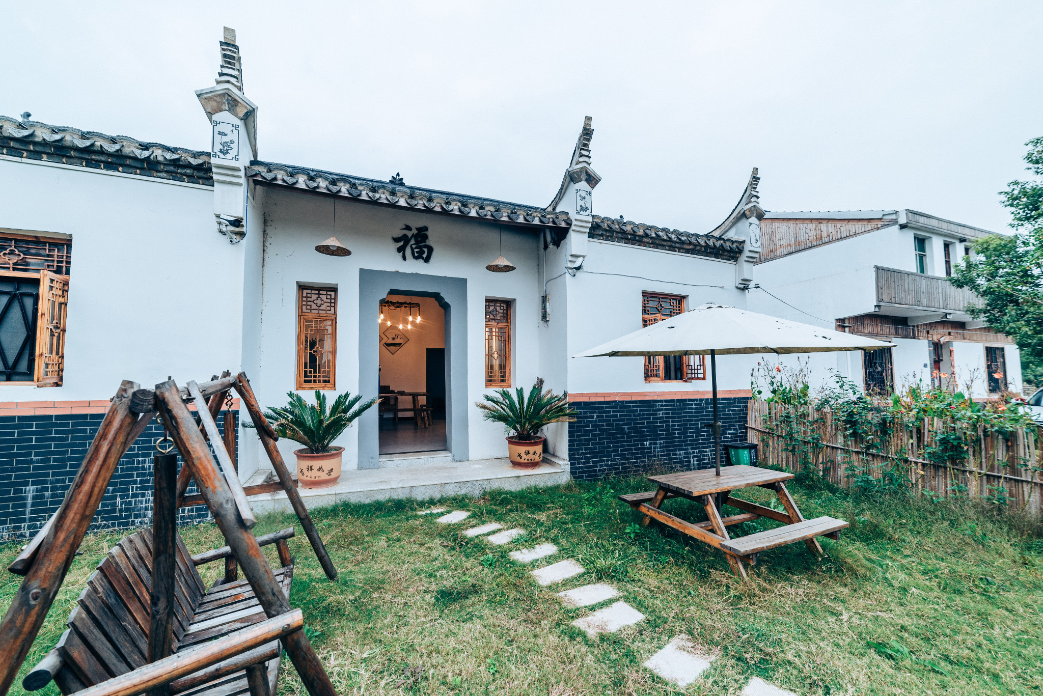 胡兴咀农机小镇并不大,池塘、豆腐坊、油坊、小广场。与相邻的几个看上去灰扑扑的村子相比,农机小镇的房屋整体用了白墙蓝瓦,与周边的稻田菜园形成鲜明对比。莉莉姐的民宿在村里算是比较古朴的院落,还原了上世纪五六十年代的风貌。