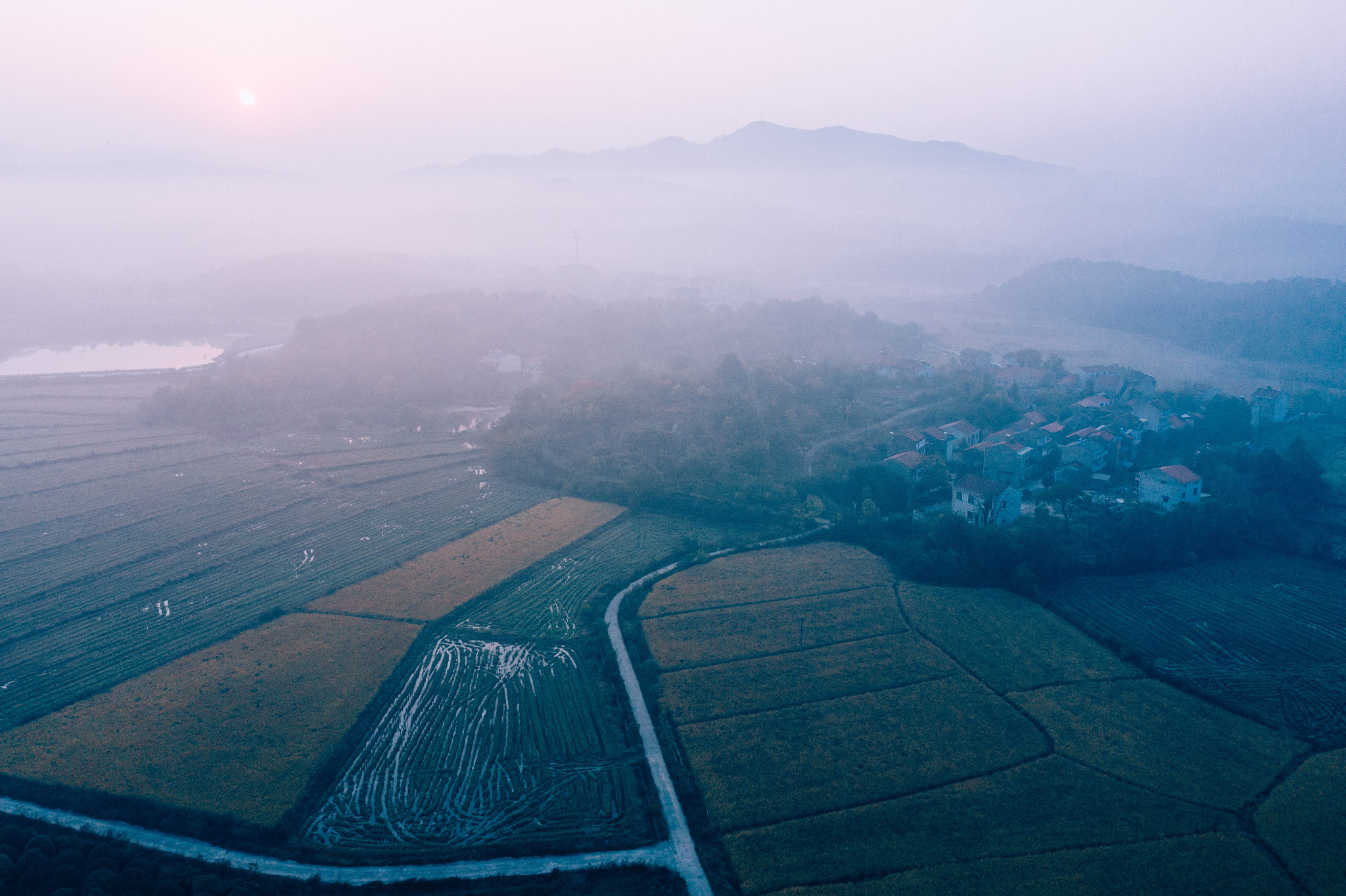翌日早晨,被公鸡打鸣叫醒。天朦朦亮的时候,推窗看见了外面的晨雾。这正是黄陂秋天独有的天气。果断出门升起小飞机,穿过平流云雾,拍到了如梦如幻的黄陂乡村。