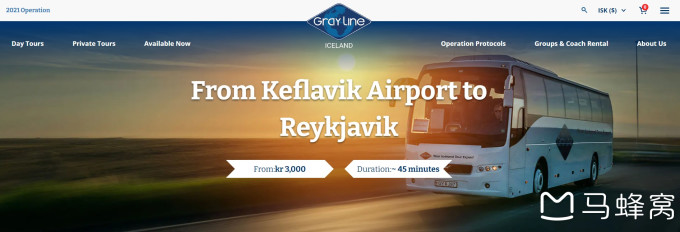 如果你不打算自驾,凯夫拉维克国际机场有大巴往返雷克雅未克市区,票价在3000冰岛克朗左右,人民币150元。Gray Line Iceland就是其中一家提供大巴服务的公司。