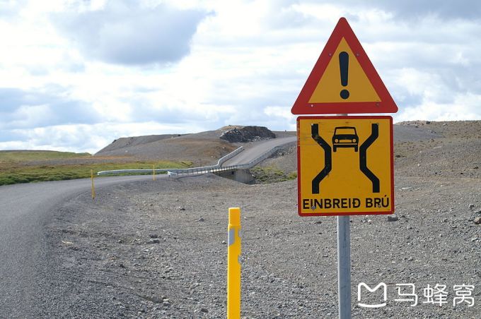 上图是在冰岛环岛驾驶常见的单行桥。碰到这样的单行桥,应该是靠的近的车辆先过。但是更推荐的是在对方有来车的情况下,先靠右停车,观察对方的意图。如果不放心想让对方先过的话, 可以短促按车喇叭向对方示意。