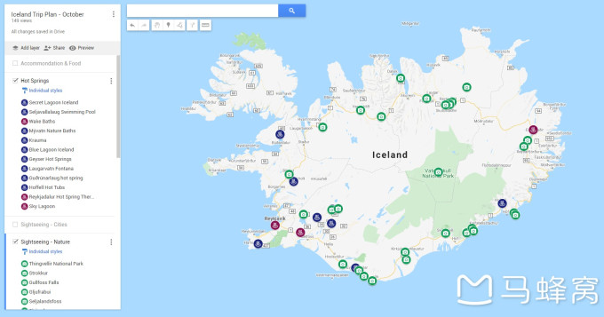 在自制的地图里还标记了我们打卡的景点,具体每日的路线,想去且打卡了的温泉,后面会贴谷歌链接,在这里先讲一下路线准备工作。