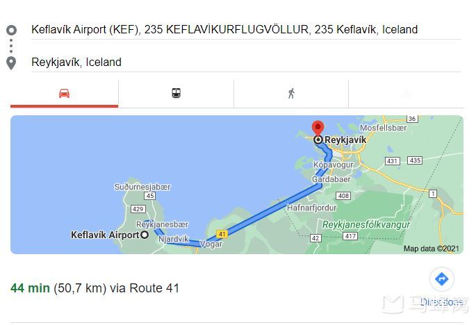 这里需要注意一下,对于到达冰岛的国际航班,虽然航空公司都会说到达地是雷克雅未克,但是准确来说是凯夫拉维克国际机场(Keflavik International Airport),离雷克雅未克市区还有大概45分钟车程。