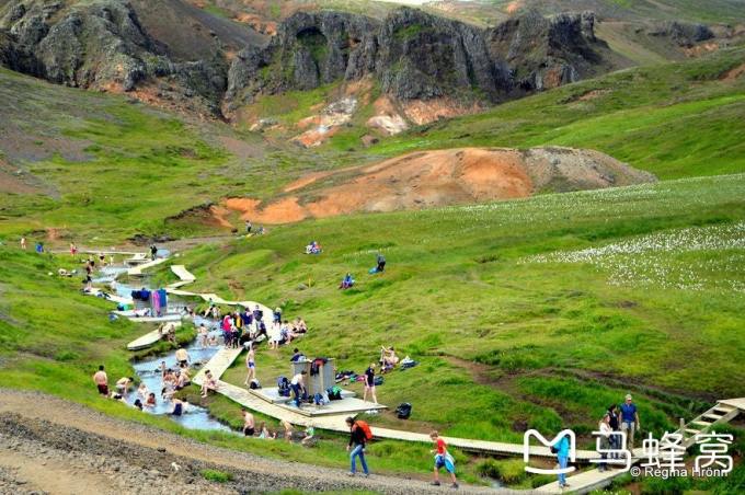 在reykjadalur小镇的一个免费天然地热小溪
