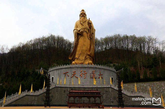 老子雕像是景区的一个标志建筑。老子铜像高三十八米、通高五十九米的。该铜像用三百六十吨青铜铸造,经基尼斯认证为世界最高的老子铜像。很遗憾铜像在维护保养中,无缘相见。网上抠了两张图。
