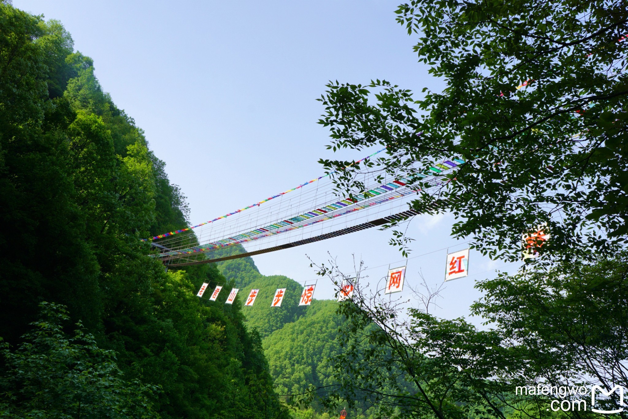 网红桥。一组三条桥:木栏、玻璃、绳索,哪条看着都挺晕。