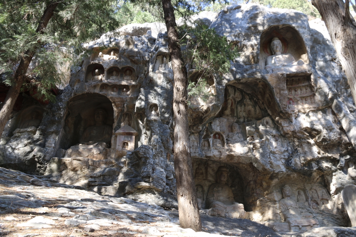 造像分布在山的东侧陡峭崖面上,南北长约64米,共有窟龛140余个,造像210余尊。始凿于唐,宋、元、明各代有零星刻凿,以唐代初期造像为主。