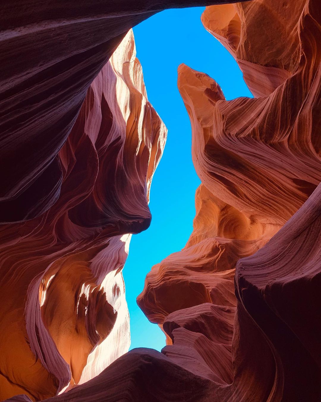 每一个角度都有着不同的色彩,无可复制。仰望狭缝上空,简直是一阵阵迷幻!感叹大自然的奇妙!