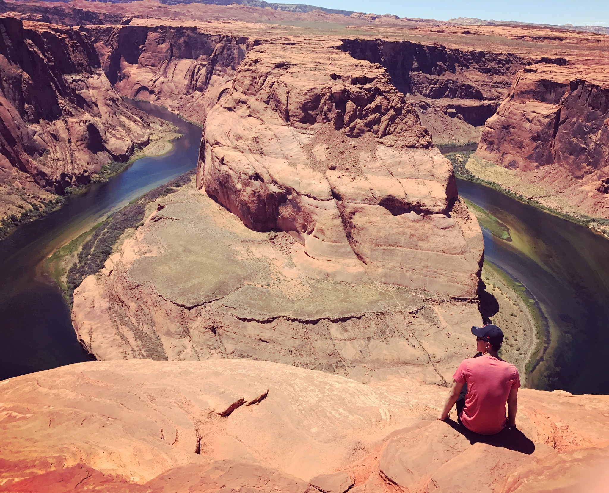 马蹄湾是一个观望点。由于河湾环绕的巨岩形似马蹄,所以叫做“马蹄湾”,也有人叫它科罗拉多河的大拐弯。马蹄湾土质因为含有大量的铁和锰金属,所以在阳光下闪耀着美丽的金属红色。而科罗拉多河水下的藻类品种繁多,受这些藻类的影响,水呈现出翡翠般的绿色,红色的土和绿色的河相得益彰,颜色赏心悦目。